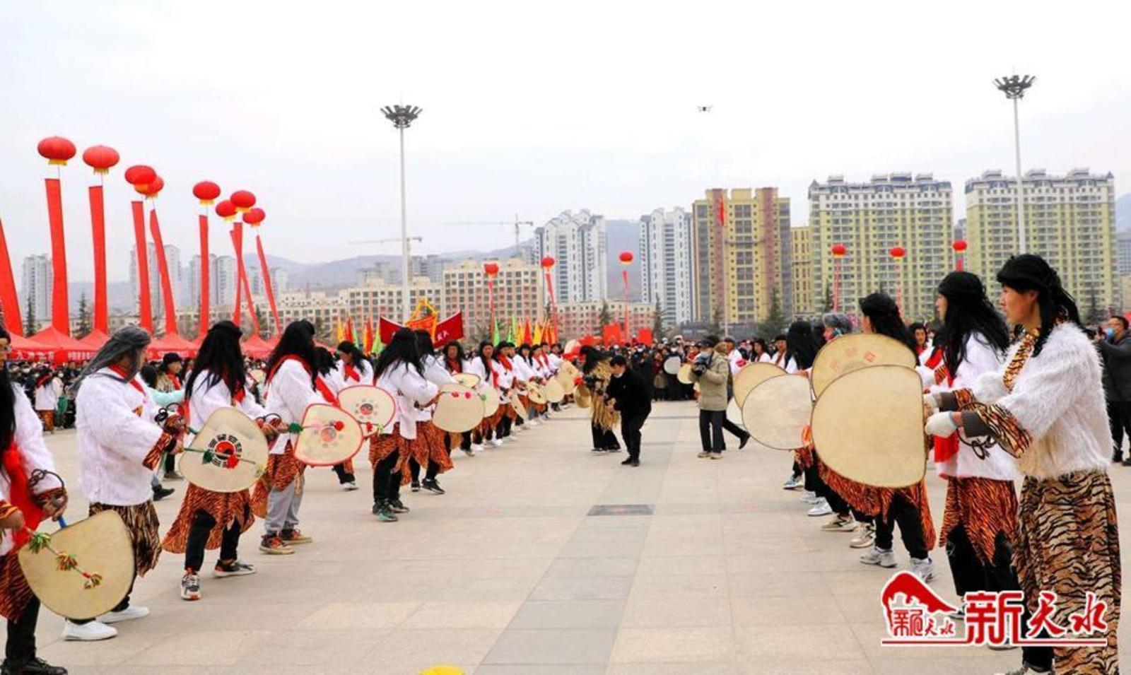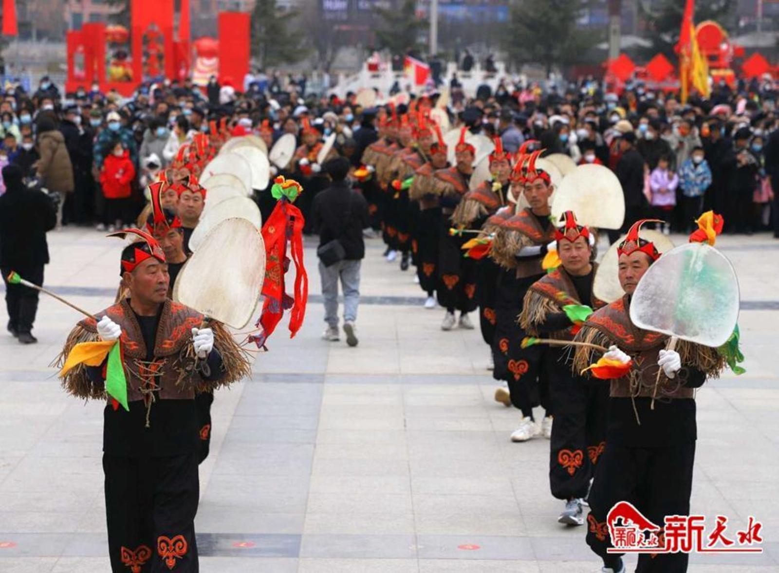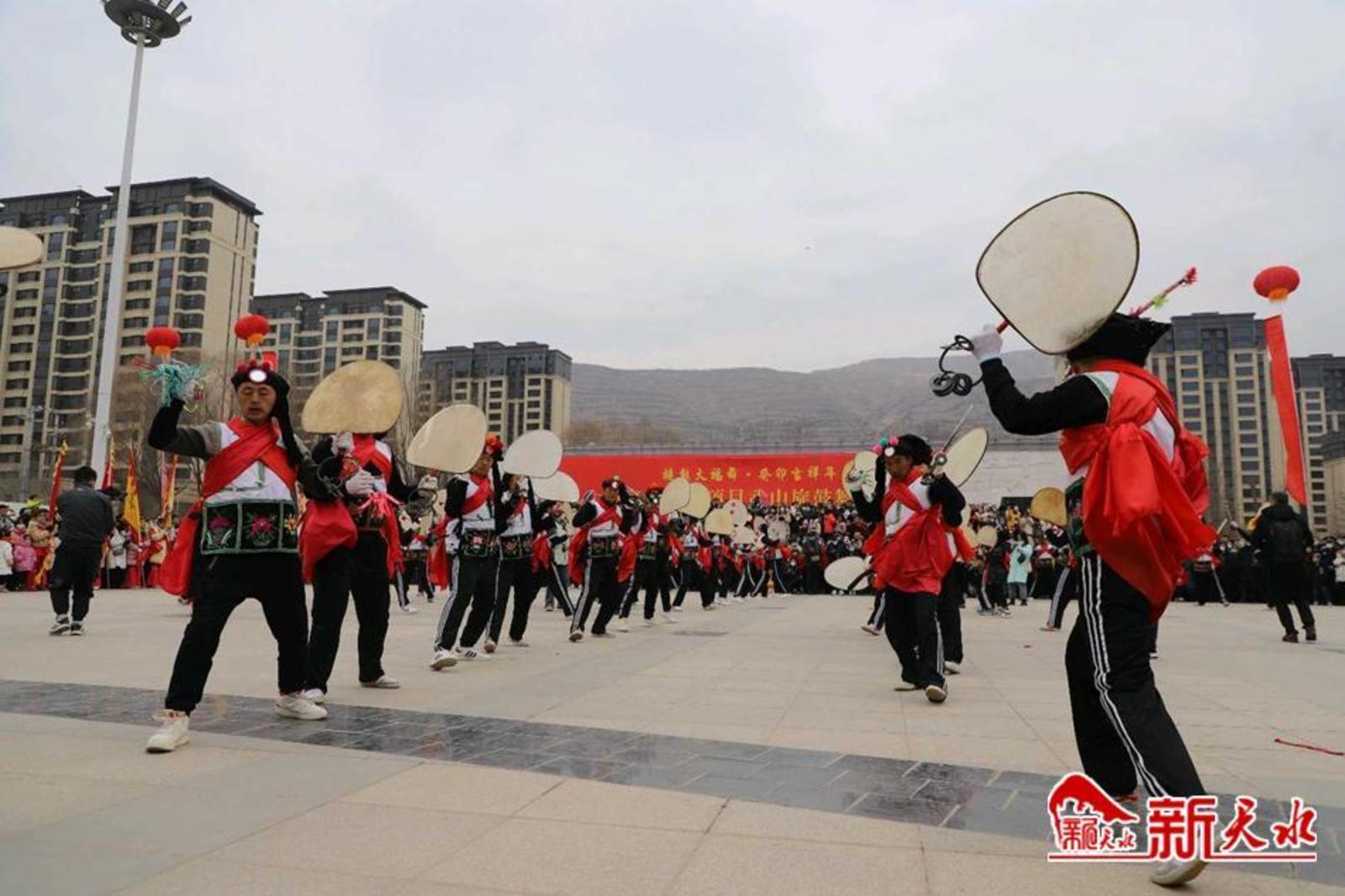新天水讯 弘扬传统文化,共庆癸卯新春。农历正月十一,由中共武山县委宣传部和武山县文体广电和旅游局主办,县体育发展中心、县文化馆、县融媒体中心、县渭川文化研究中心、城关镇、洛门镇、滩歌镇和龙台镇承办的“旋鼓大福舞·癸卯吉祥年”国家级非遗项目武山旋鼓舞展演成功举办。
