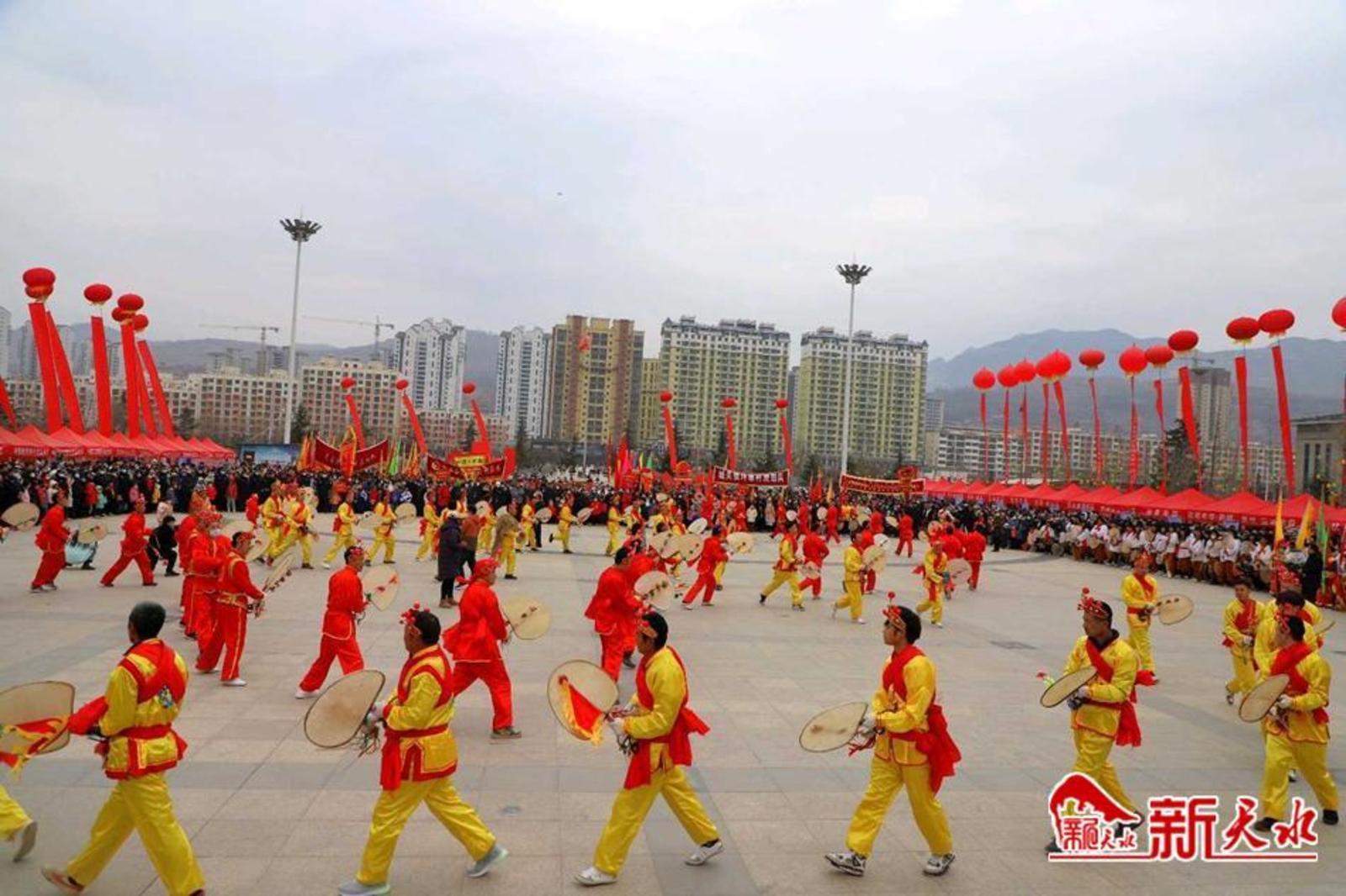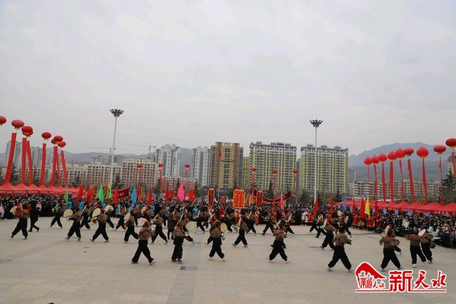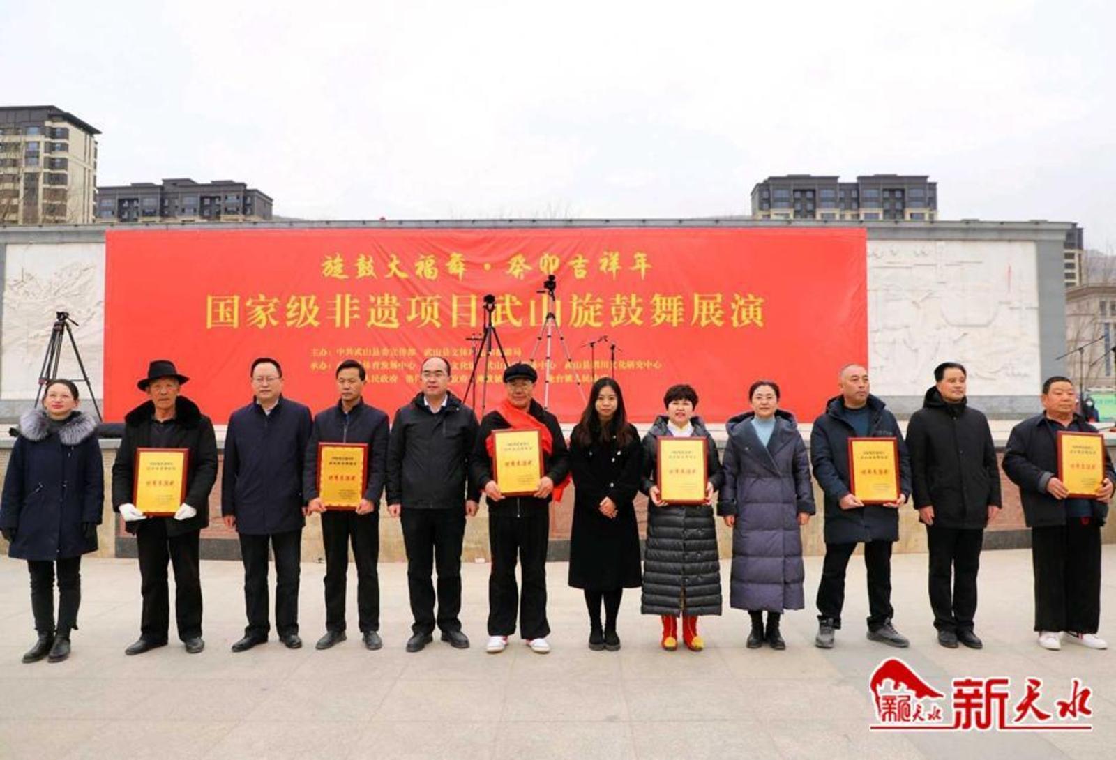 新天水讯 弘扬传统文化,共庆癸卯新春。农历正月十一,由中共武山县委宣传部和武山县文体广电和旅游局主办,县体育发展中心、县文化馆、县融媒体中心、县渭川文化研究中心、城关镇、洛门镇、滩歌镇和龙台镇承办的“旋鼓大福舞·癸卯吉祥年”国家级非遗项目武山旋鼓舞展演成功举办。
