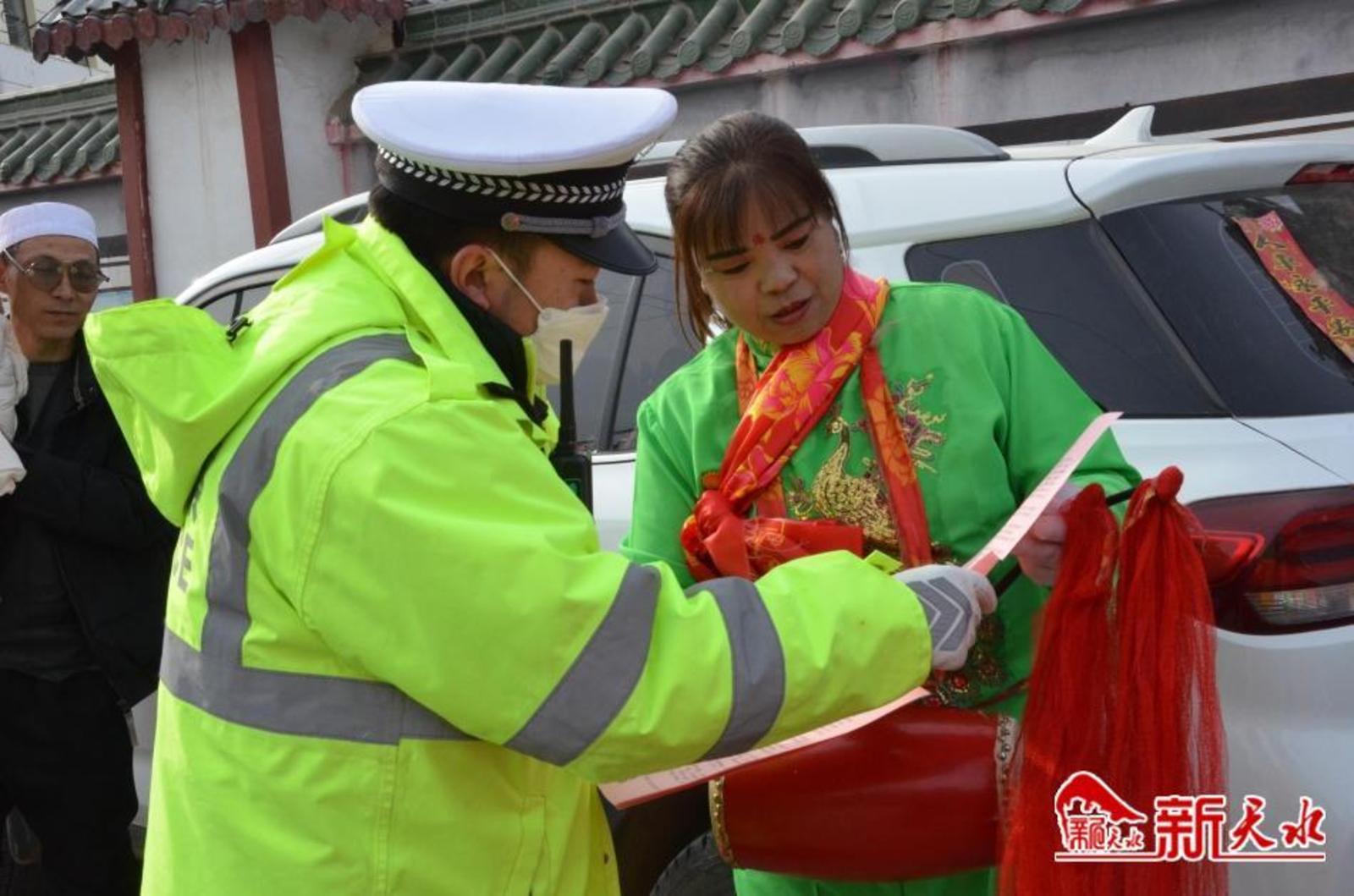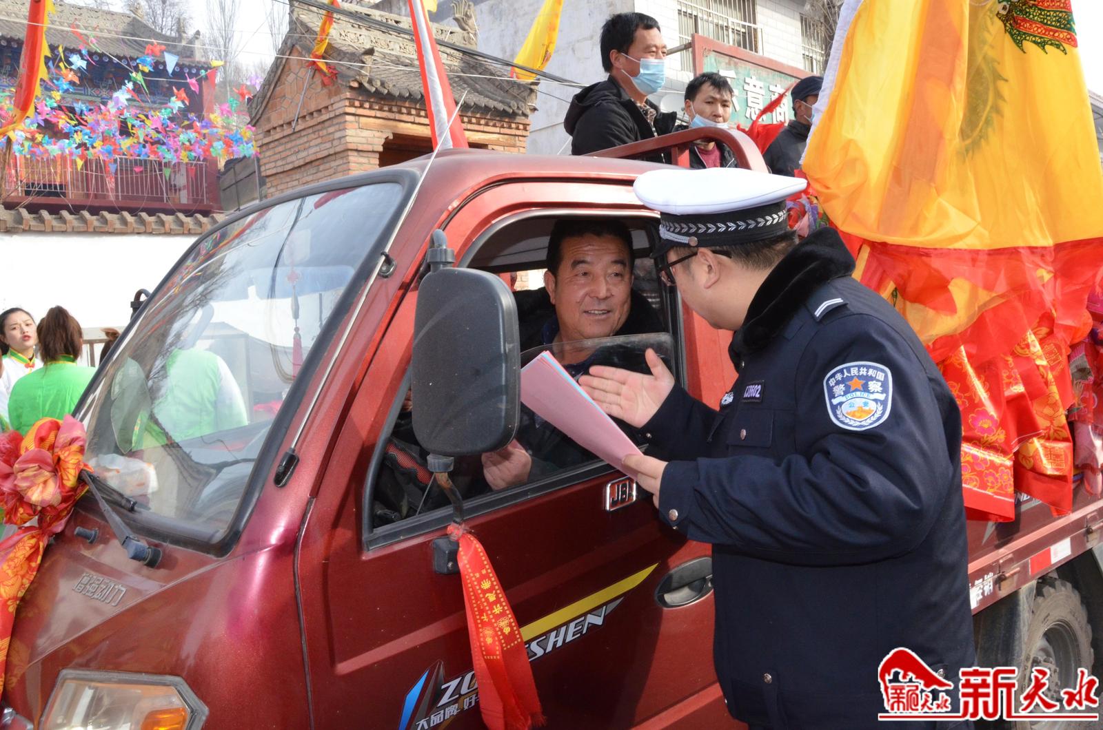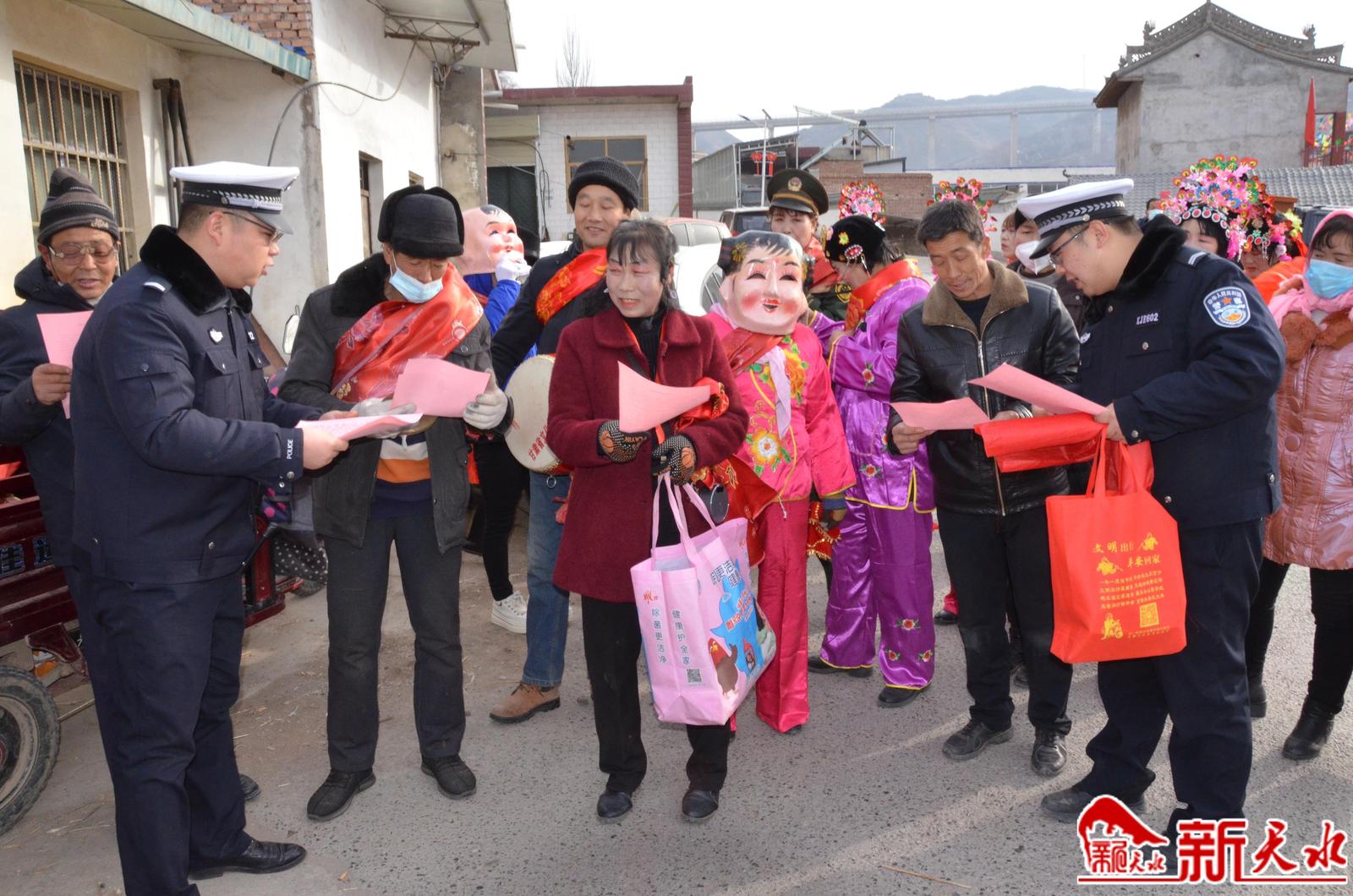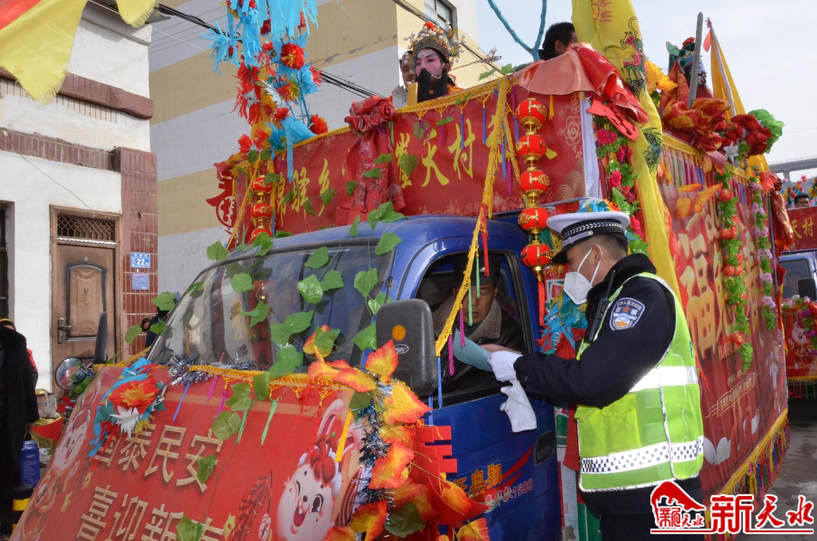 2月2日(农历正月十二)是张家川回族自治县张棉乡一年一度的社火表演日,当天,来自四面八方前来观看社火表演的群众络绎不绝,张家川县公安局交警大队宣传民警紧紧抓住这一有利时机,结合“美丽乡村行”“一老一小”主题宣传活动,向广大交通参与者宣讲交通安全常识。大队宣传民警针对广大交通参与者还沉浸春节吃饭喝酒的喜庆气氛中,有可能出现酒后驾车行为的实际,及时向驾驶人讲解酒后驾驶机动车的危害,告诫广大交通参与者一定要牢记交通安全法律法规,坚决杜绝酒驾行为,为自己及他人的生命安全负责,更要为自己的家庭负责,用文明参与交通的点滴,筑牢平安中国年。新天水记者余碧波 摄
