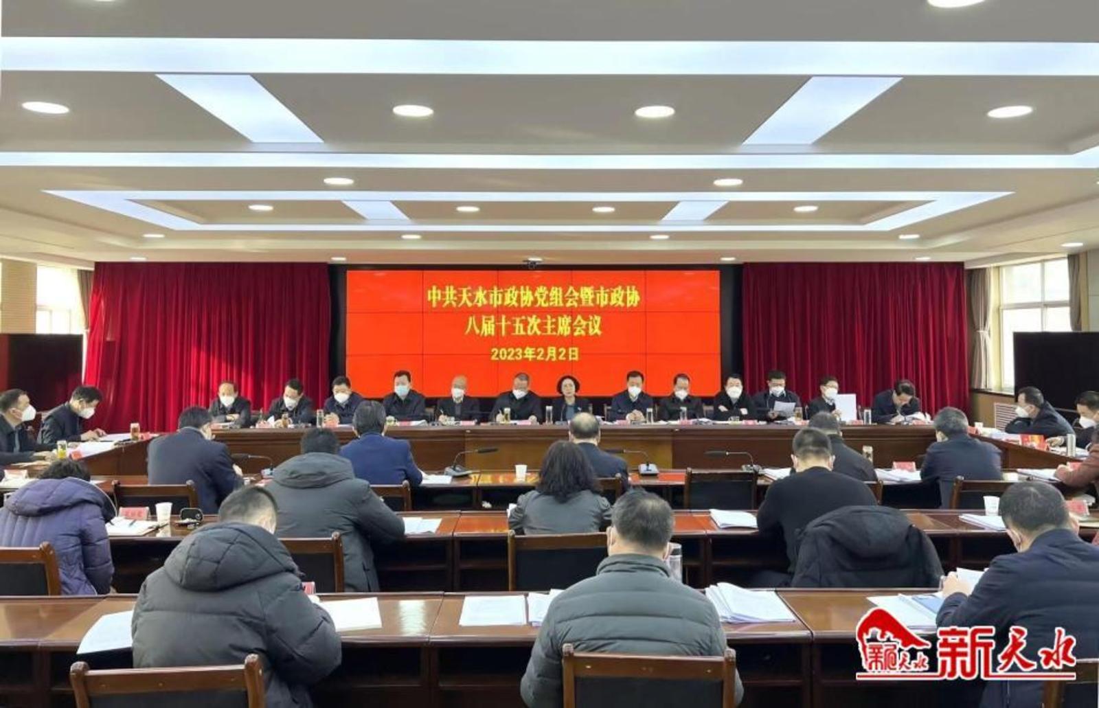 新天水讯【记者马哲】2月2日,市政协党组书记、主席王燕主持召开市政协党组会暨市政协八届十五次主席会议。市政协党组副书记、副主席马勤学,副主席马筱宁、吴立新、董仲奇、崔玉军、何宝平、杨铁森、罗增芳、范多智,一级巡视员郭明兴,党组成员、秘书长董小明,党组成员、经济委主任贾忠慧出席会议。