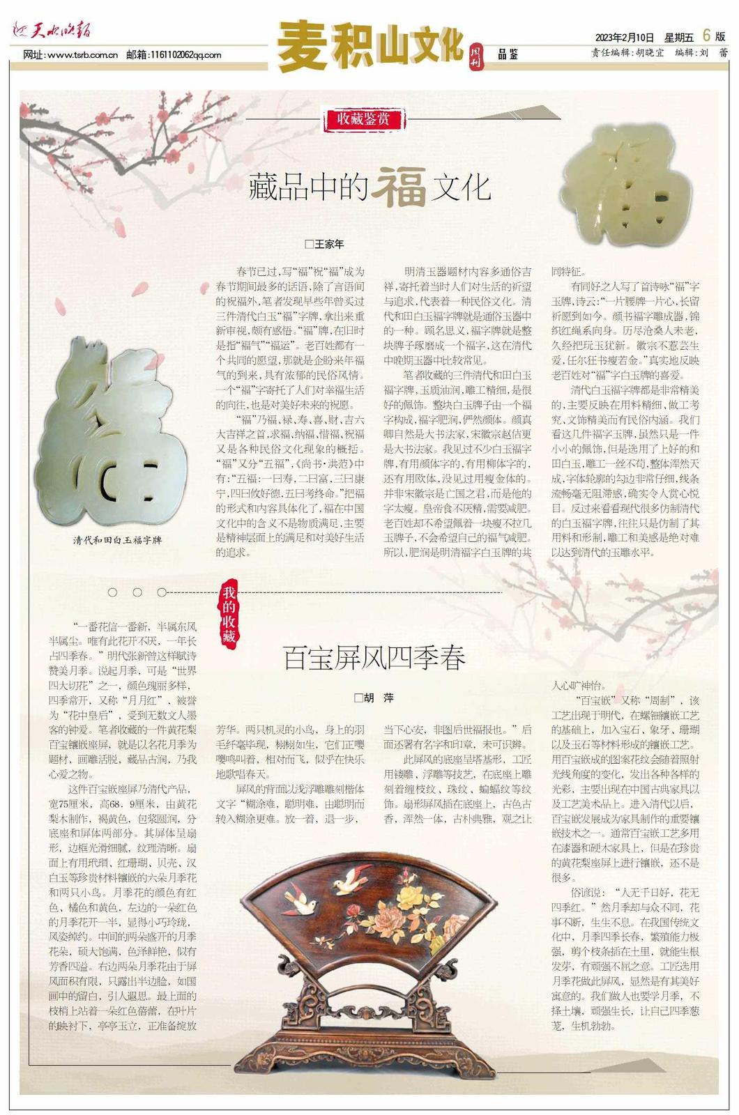 有同好之人写了首诗咏“福”字玉牌,诗云:“一片腰牌一片心,长留祈愿到如今。颜书福字雕成器,锦织红绳系向身。历尽沧桑人未老,久经把玩玉犹新。徽宗不惹芸生爱,任尔狂书瘦若金。”真实地反映老百姓对“福”字白玉牌的喜爱。