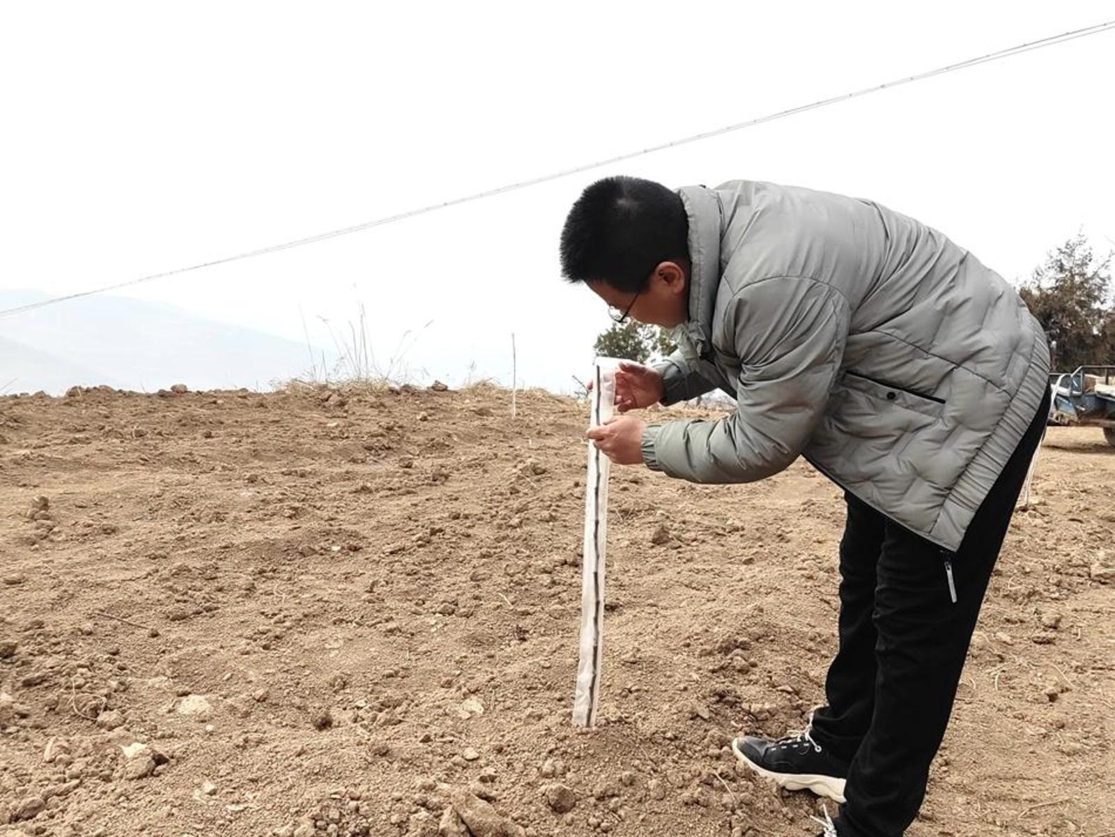 在麦积区马跑泉镇光坡梁片带一处山腰间的果园里,季先珍和父亲细心地将苹果树苗栽到土壤经过改良后的丰产沟中。一株株新栽的树苗在春风里昂然挺立,焕发出勃勃生机。