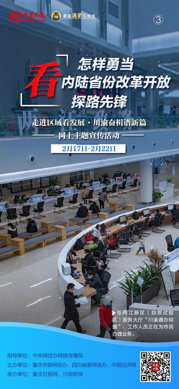 2月17日,由中央网信办网络传播局指导,重庆市委网信办、四川省委网信办、中国经济网共同主办的“走进区域看发展·川渝奋楫谱新篇”网上主题宣传在重庆江北嘴中央商务区启动。