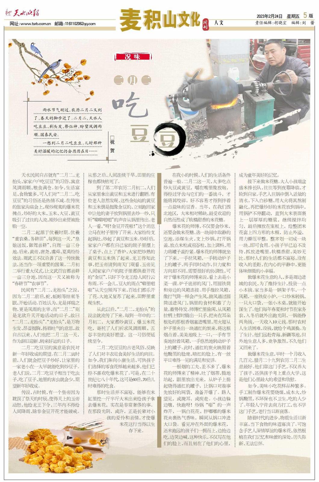 二月二,天水人吃豆豆、剃头发、祭灶神,盼望风调雨顺,国泰民安。