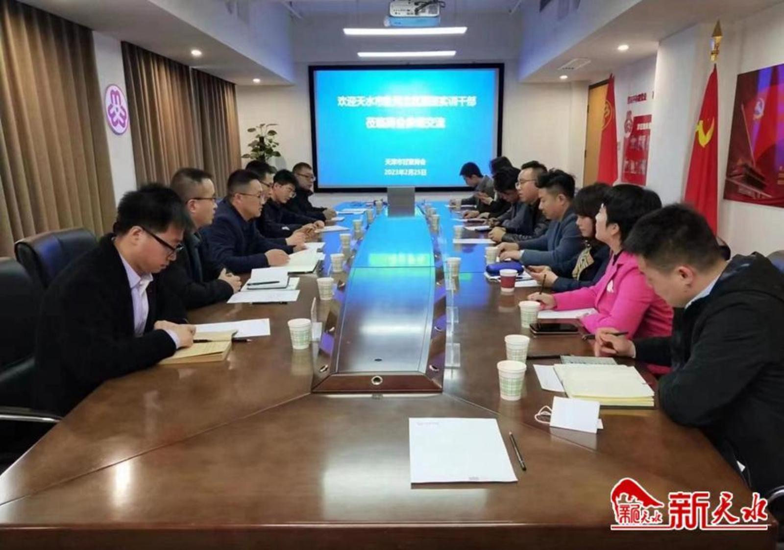 新天水讯 近日,清水县山门镇有关负责人在天津河北区跟班实训期间,主动拜访天津甘肃商会、天津河南商会,宣讲推介清水县以及山门镇的特色农产品和丰富的旅游资源。