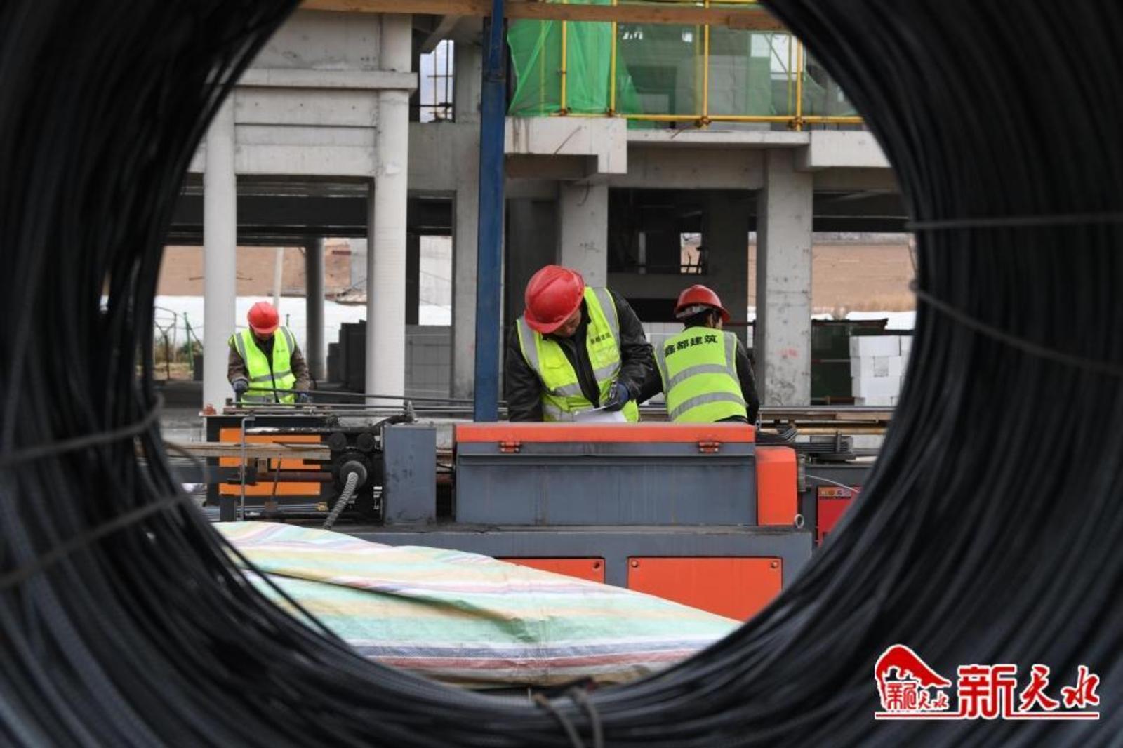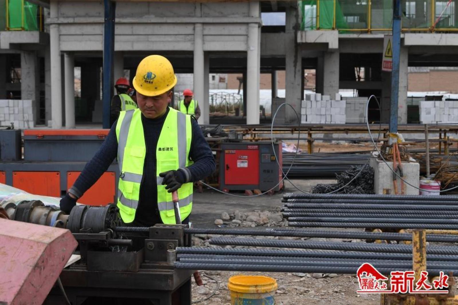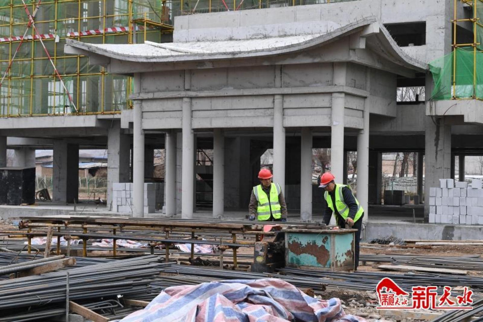 日前,记者走进武山县水帘洞景区游客中心建设项目施工现场,电焊声、钢筋碰撞声交织作响,运输车辆来回穿梭,施工机械挥舞长臂,塔吊如椽巨笔……工人们撸起袖子、甩开膀子奋战在施工工地,用冲天的干劲和辛勤的汗水决战“开门红”。