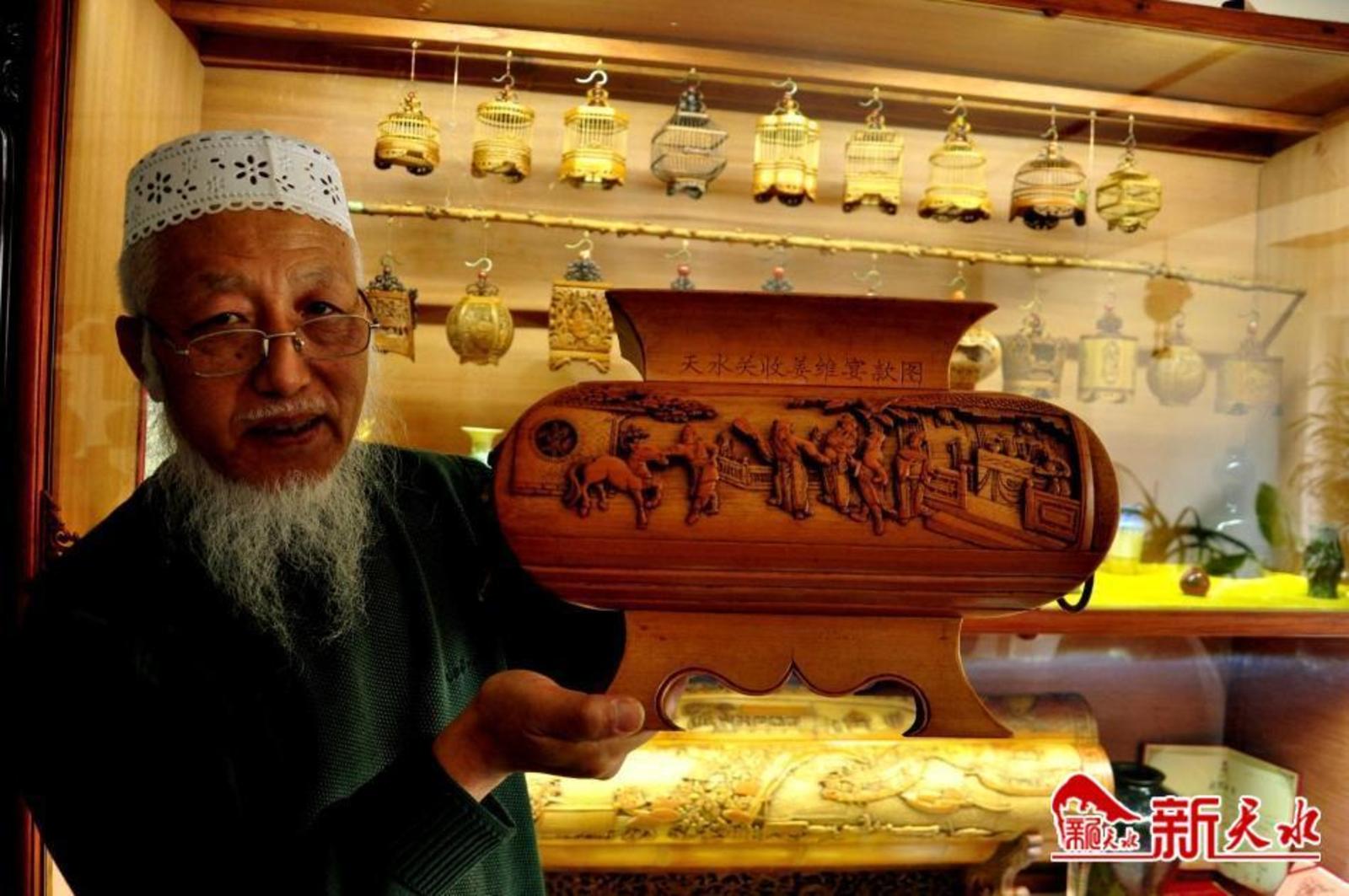 天水竹雕制作技艺于2008年被认定为省级非物质文化遗产。竹雕也称竹刻,是在竹制的器物上雕刻多种装饰图案和文字,或用竹根雕刻成各种陈设摆件的一种手工艺术。