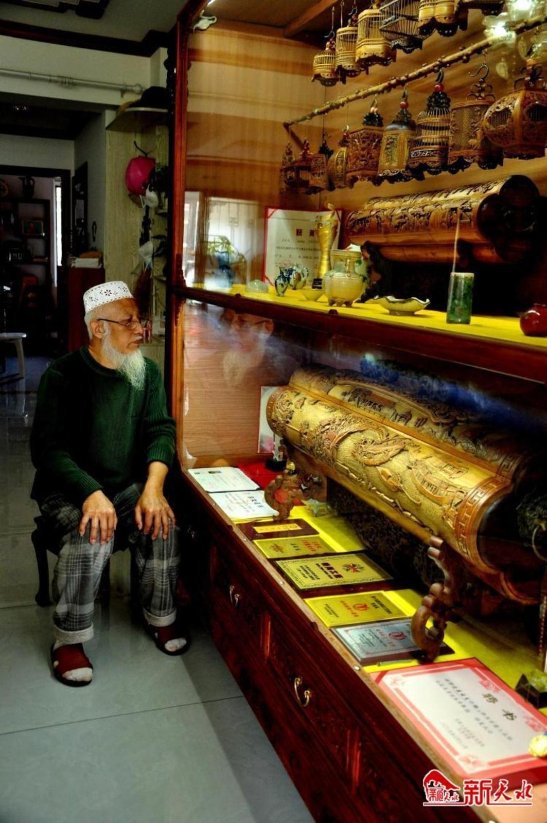 2月23日,在位于秦州区石马坪鸿源新居的居室兼工作室,天水竹雕制作技艺省级非遗代表性传承人吴云生先生正在为客户赶制定做的竹雕工艺品。