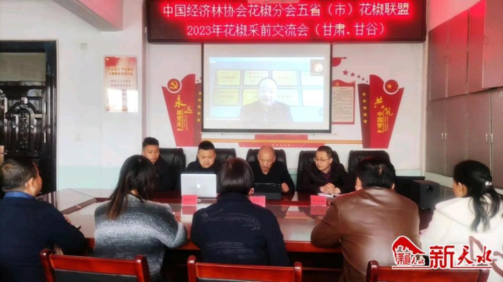 甘谷县效胜花椒产业有限公司、甘肃农小胖农业有限公司、甘肃椒先生有限公司、甘谷县花椒协会负责人在甘谷分会场参加了会议。(蒋侠)
