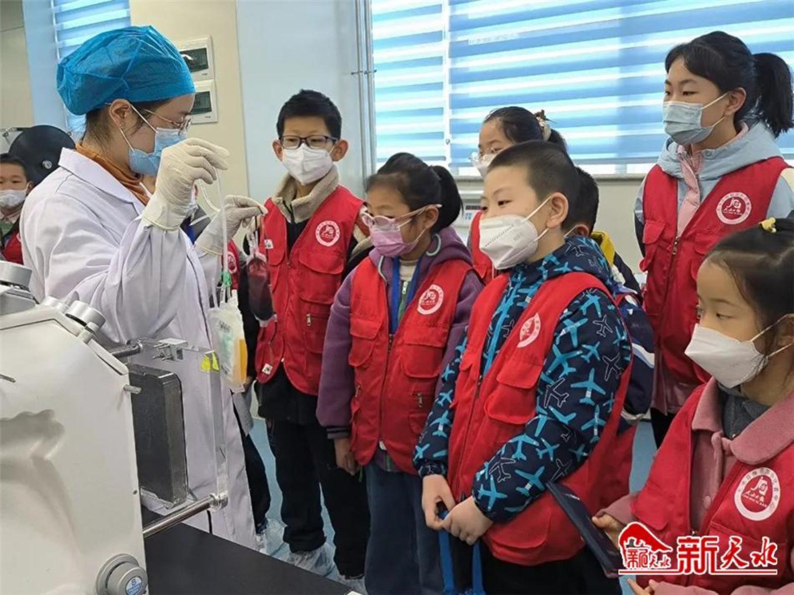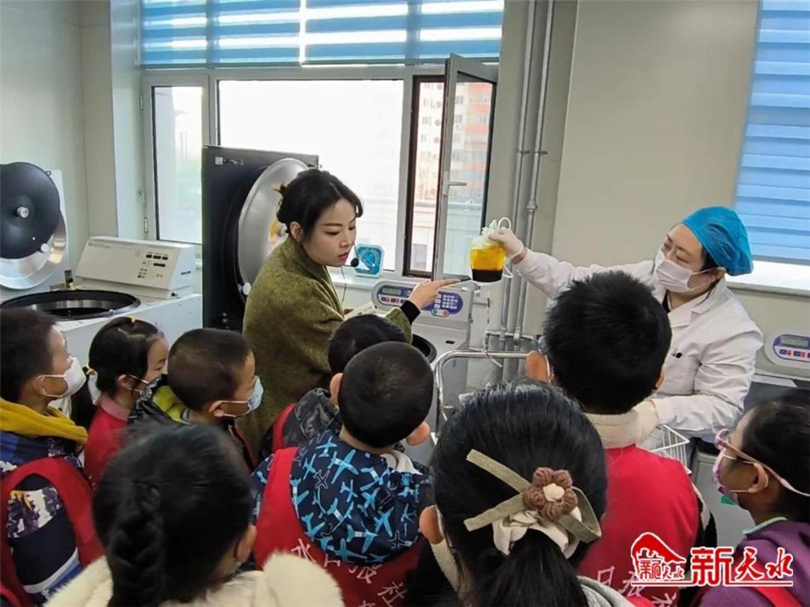 在参观天水市中心血站开放日主题活动中,小记者们在工作人员的带领下,依次进入供血科、采血室、成分科、检验科等科室,近距离观看血液采集、检测、制备和储存的过程,探究充满奥秘的人体血液,以及“一袋血”的温暖历程。