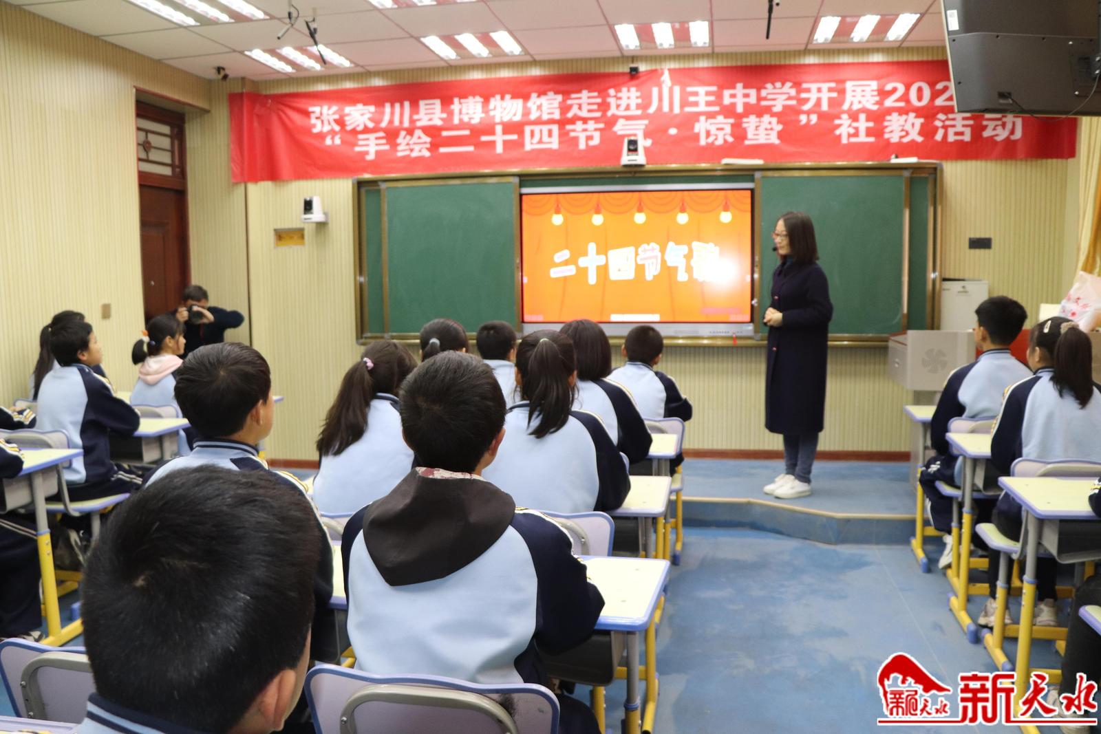 新本水讯 微雨众卉新,一雷惊蛰始。3月6日,是我国传统二十四节气之一的惊蛰,四季的春,正如春日的晨,此时天气转暖,逐渐出现春雷现象,喻示着万物复苏。在这美好的日子,张家川县博物馆党支部走进川王中学举办了以“手绘二十四节气·惊蛰”为主题的社教活动,为乡村孩子带去春的温暖。