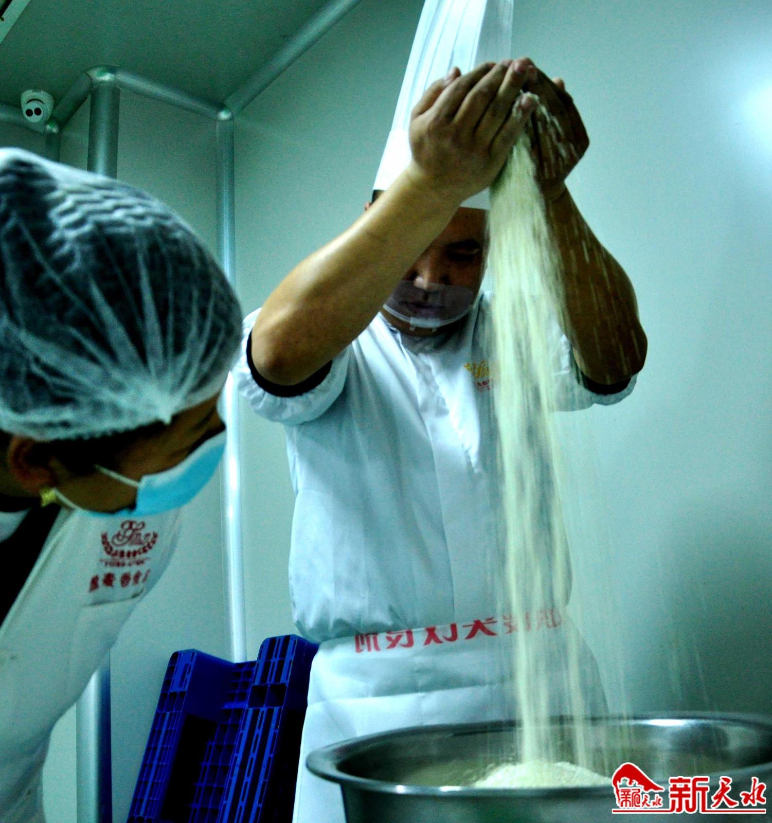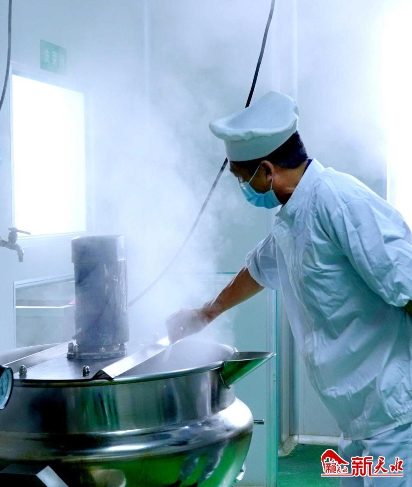 3月6日,在位于秦州区暖和湾工业园区的天水盈麦香食品有限责任公司的呱呱生产车间,省级非物质文化遗产天水呱呱制作技艺的传承人王瑞兵正在指导工作人员对即将出锅的呱呱再搅几遍(呱呱多搅几遍后口感会更好)。虽然每条生产线上的工人们都已是行家里手,但为了让消费者吃地放心,且能够吃上正宗优质的天水呱呱,王瑞兵对每一个生产环节都盯得很紧,并要求员工们精益求精。