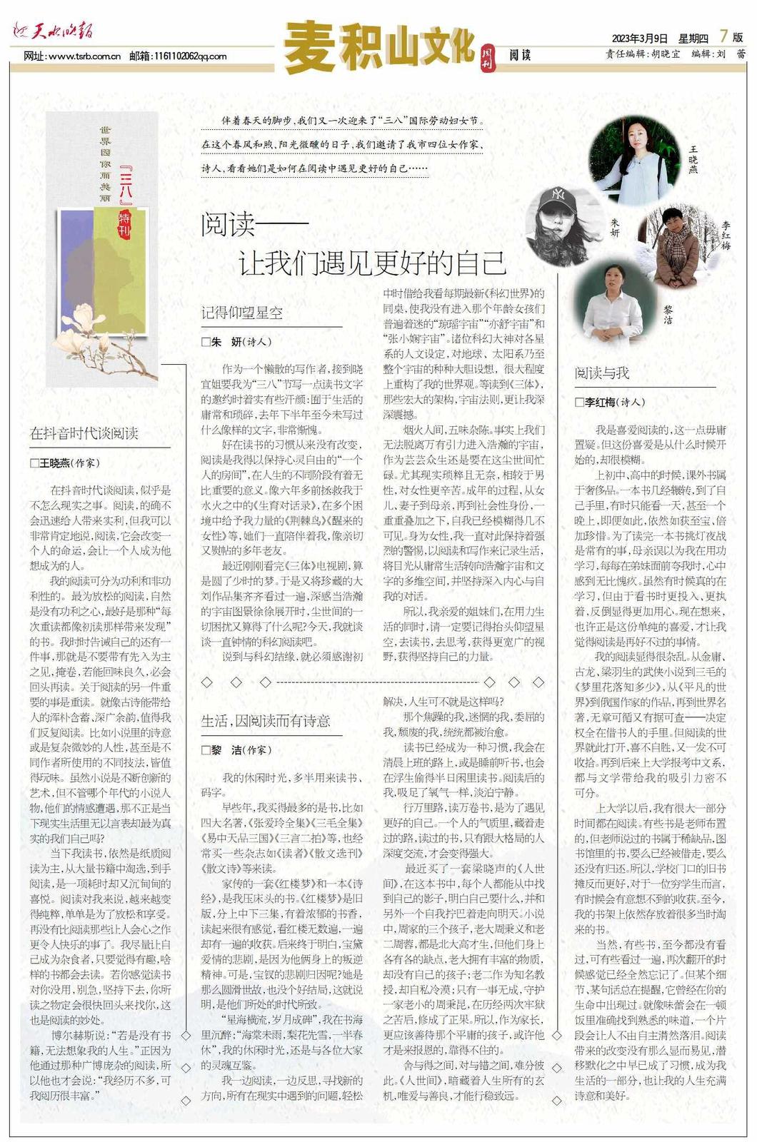 伴着春天的脚步,我们又一次迎来了“三八”国际劳动妇女节。在这个春风和煦、阳光微醺的日子,我们邀请了我市四位女作家、诗人,看看她们是如何在阅读中遇见更好的自己……