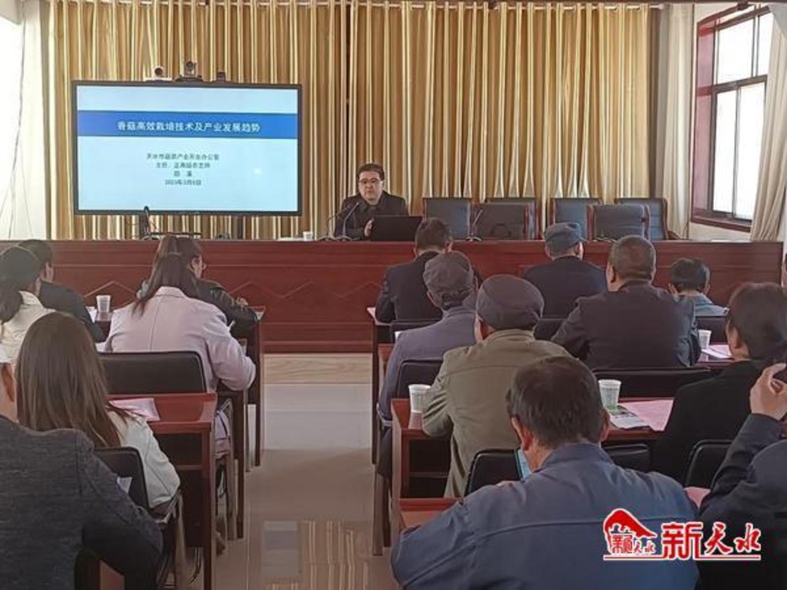 新天水讯【记者张玉平】为推进现代丝路寒旱农业食用菌产业三年倍增计划实施,深入开展“三抓三促”行动,助力武山县龙台镇食用菌产业加快发展,近日,市农业农村局蔬菜办组织专家赴武山县龙台镇开展了食用菌栽培技术培训和指导服务。