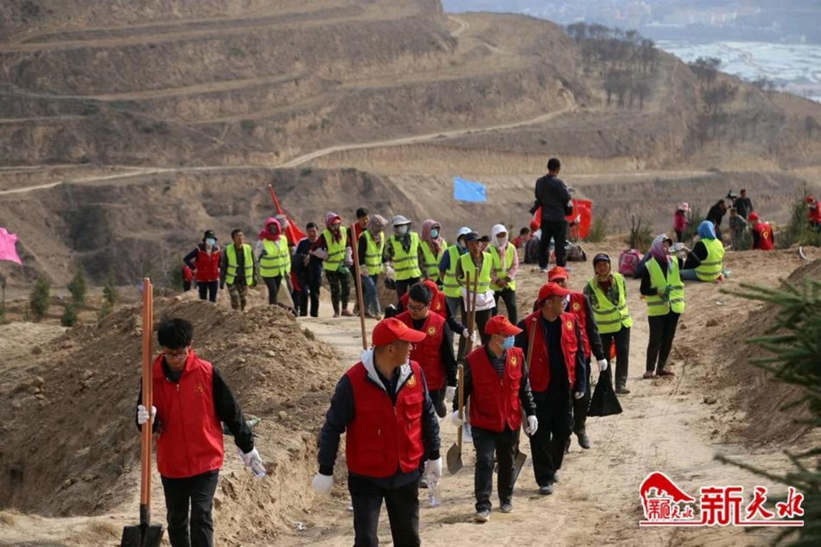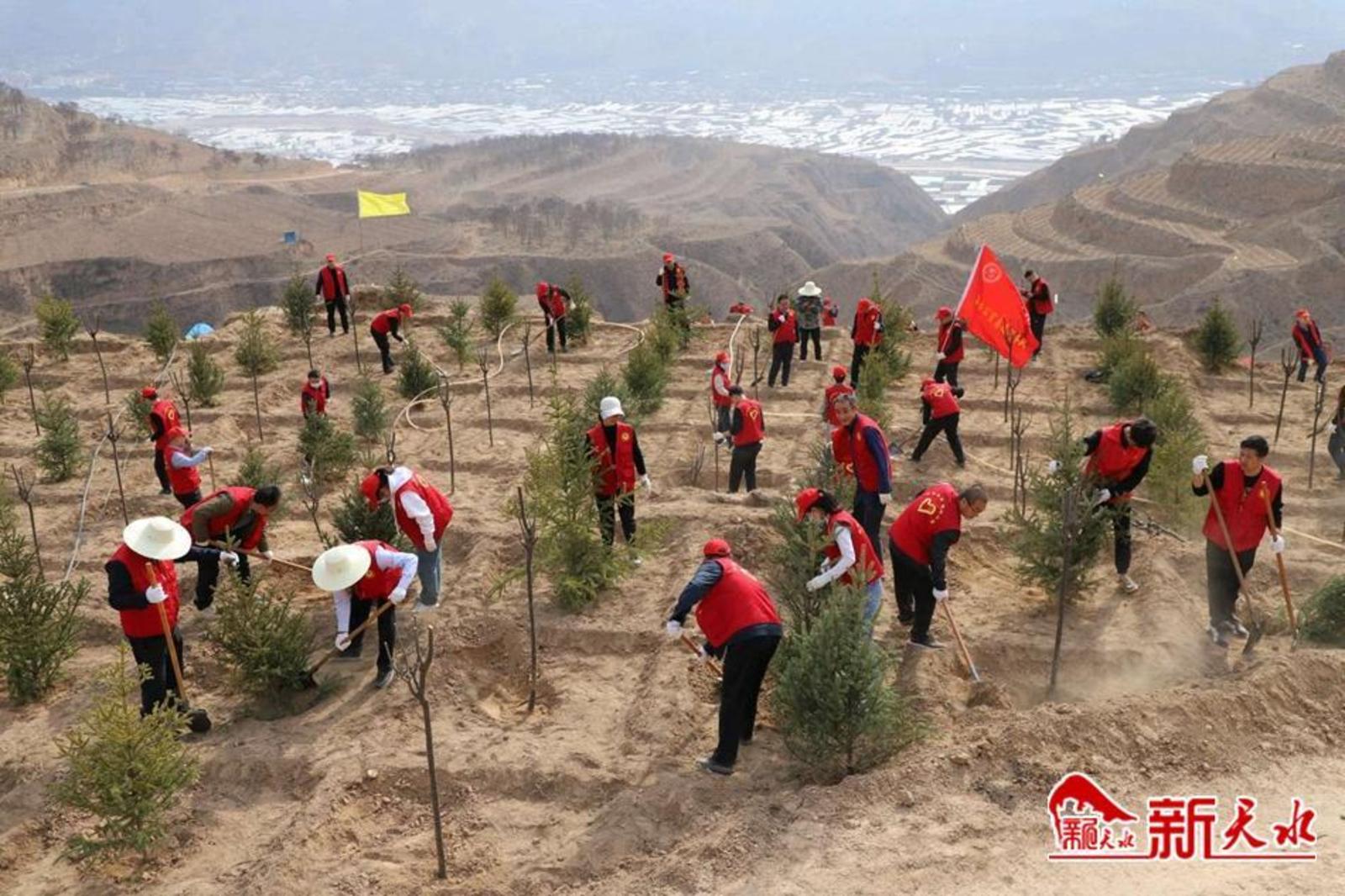 新天水讯【特约通讯员蒲爱民 管秋勇】 春风拂绿万象新,植树添绿正当时。为扎实推进春季植树造林热潮,抢抓春季气温回升的有利时机,3月10日,武山县四大班子领导与志愿者代表、干部群众一同来到榆盘镇盘龙山2000亩义务植树点参加植树活动。