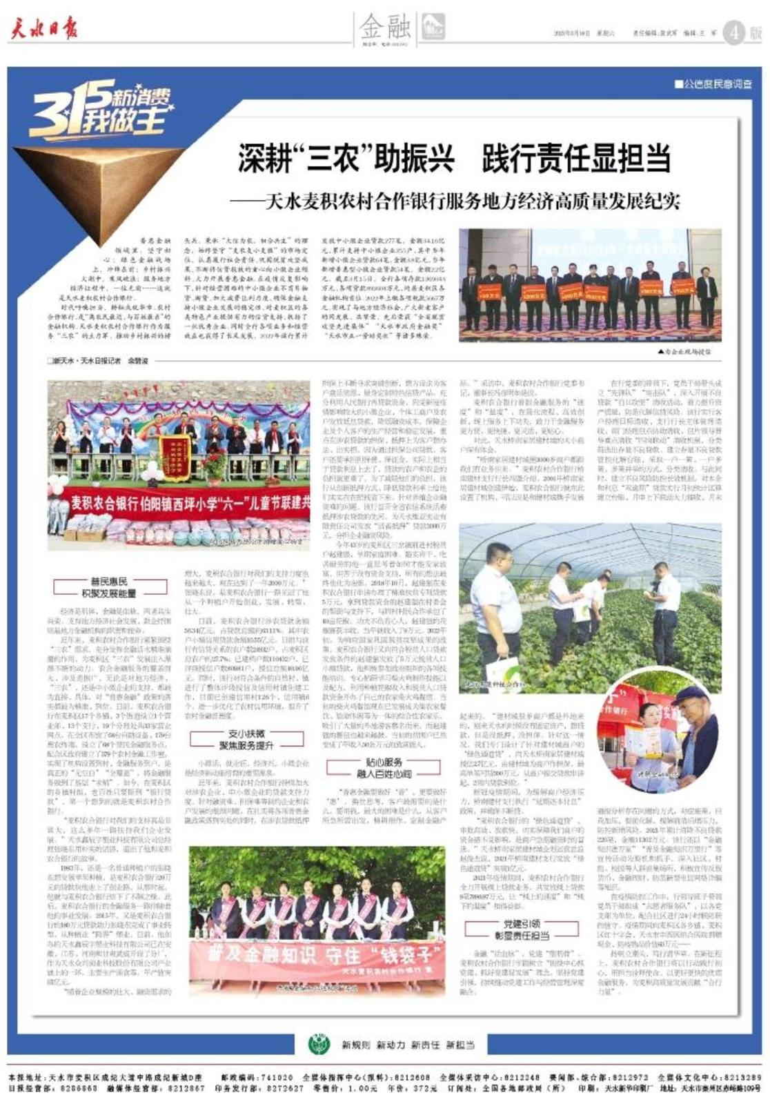 普惠金融领域里,坚守初心;绿色金融战场上,冲锋在前;乡村振兴大潮中,乘风破浪;服务地方经济征程中,一往无前……这就是天水麦积农村合作银行。