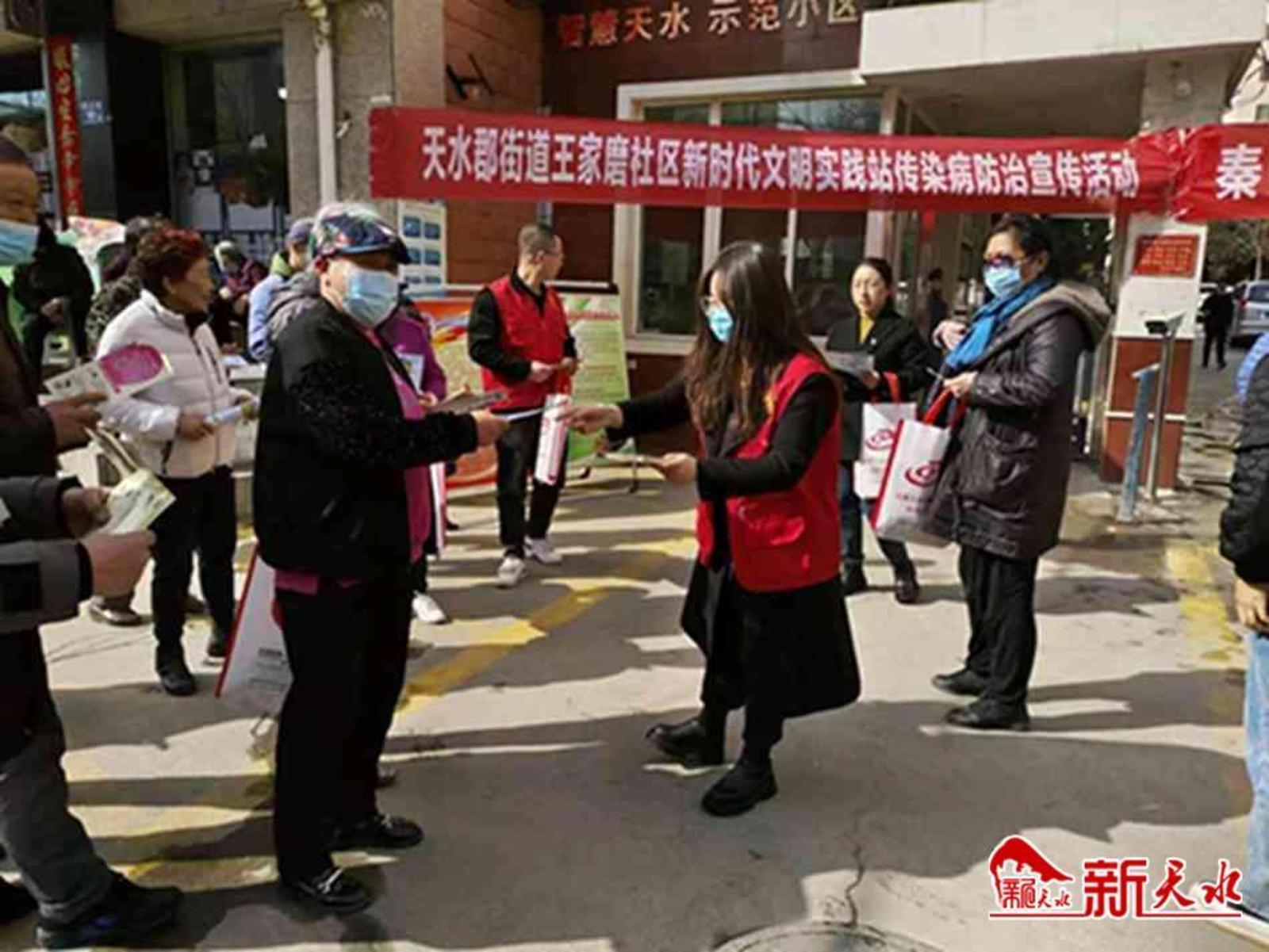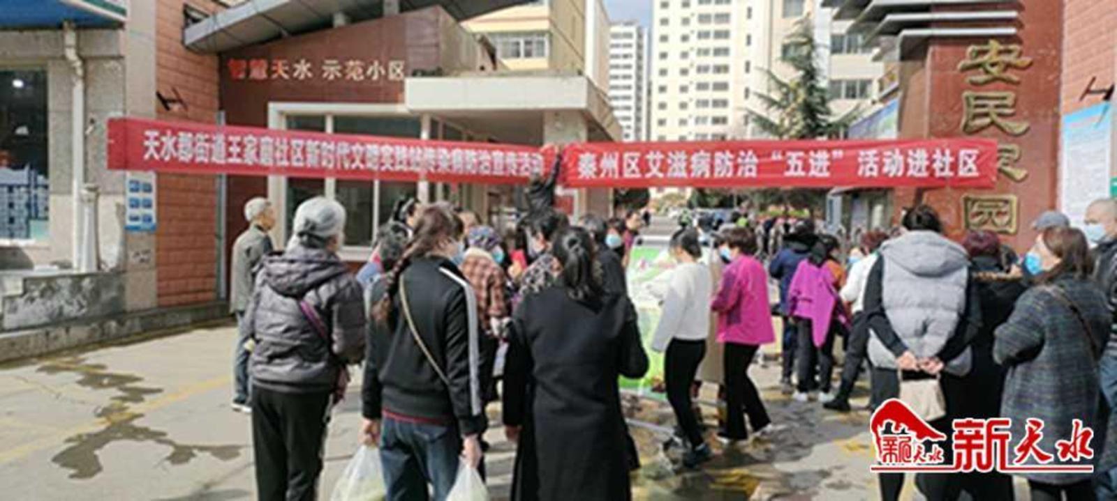 新天水讯 为宣传普及预防艾滋病的相关知识,提高居民的自我保护意识和预防水平,营造良好的健康环境,结合“三抓三促”行动,3月16日,秦州区天水郡街道王家磨社区新时代文明实践站联合区疾病预防控制中心,在安民家园大门口开展了“远离艾滋始于心 防范艾滋践于行”主题宣传活动。