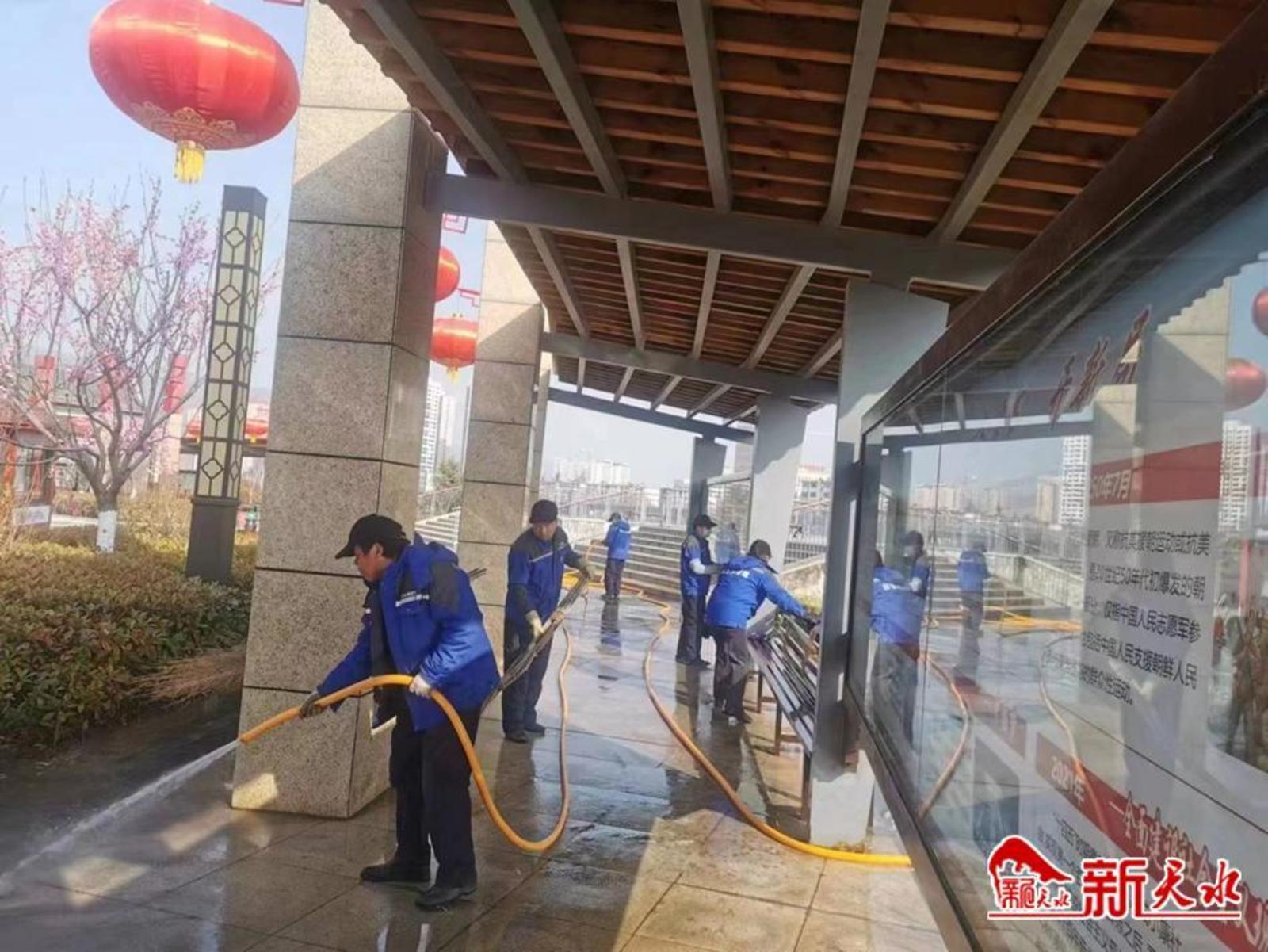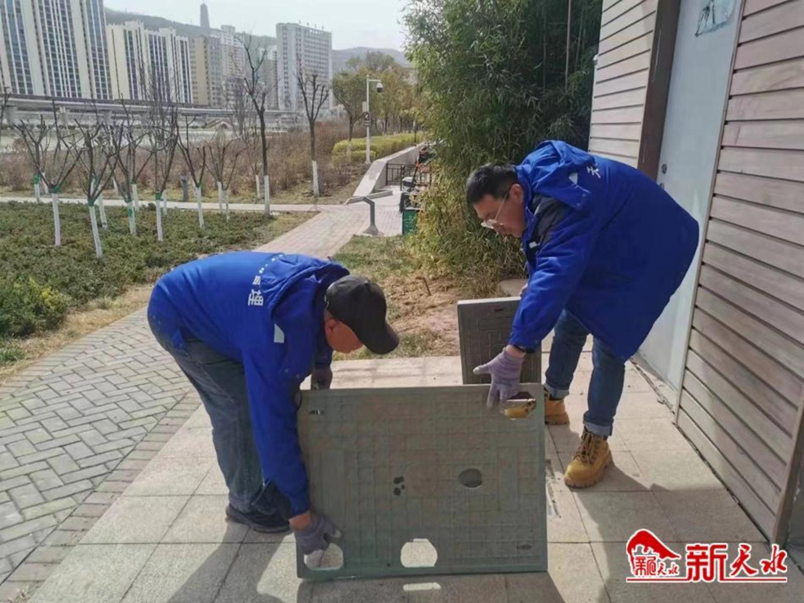 新天水讯 连日来,秦州区城乡环卫治理服务中心藉河风情线管理办公室组织工作人员开展全面排查,对藉河风情线内损坏的果皮箱、宣传牌、提示牌、路灯、栏杆、井盖等设施等进行维修更换,对破损的路面、台阶、篮球场进行修补,共维修损坏的设施60余处,更换宣传牌提示牌50余块,维修路面、台阶、运动场地20余处,除保障景区设施完好无损外,运行组每日对景区的亮化设施进行维护,全方位保障景区的美观。