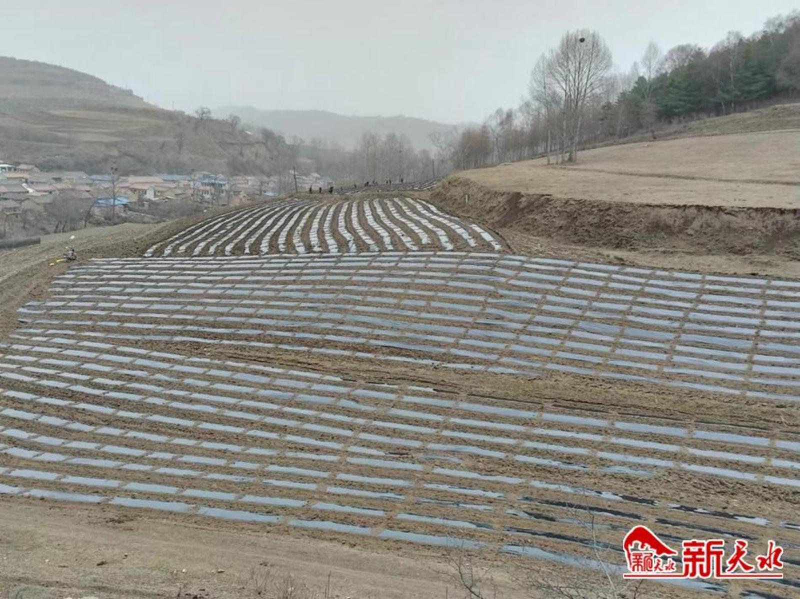 新天水讯 3月20日夜间,喜降一场春雨,清水县秦亭镇迅速组织全体镇村干部,积极发动各村合作社、种植大户积极抢墒覆膜,吹响今春特色作物种植冲锋号,全力开展金银花、万寿菊种植铺膜和蚕豆种植工作。