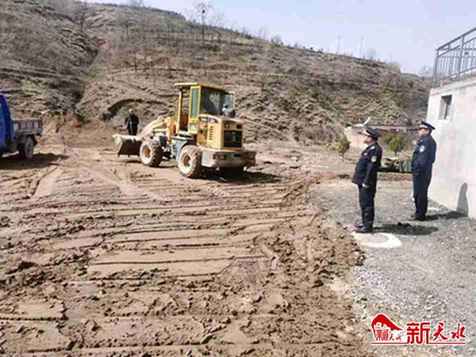 新天水讯 近日,张家川县胡川镇政府与县检察院、自然资源局、农业农村局、胡川镇派出所成立联合执法工作组,对辖区内非法建设的砂场、煤场进行了现场督办治理。
