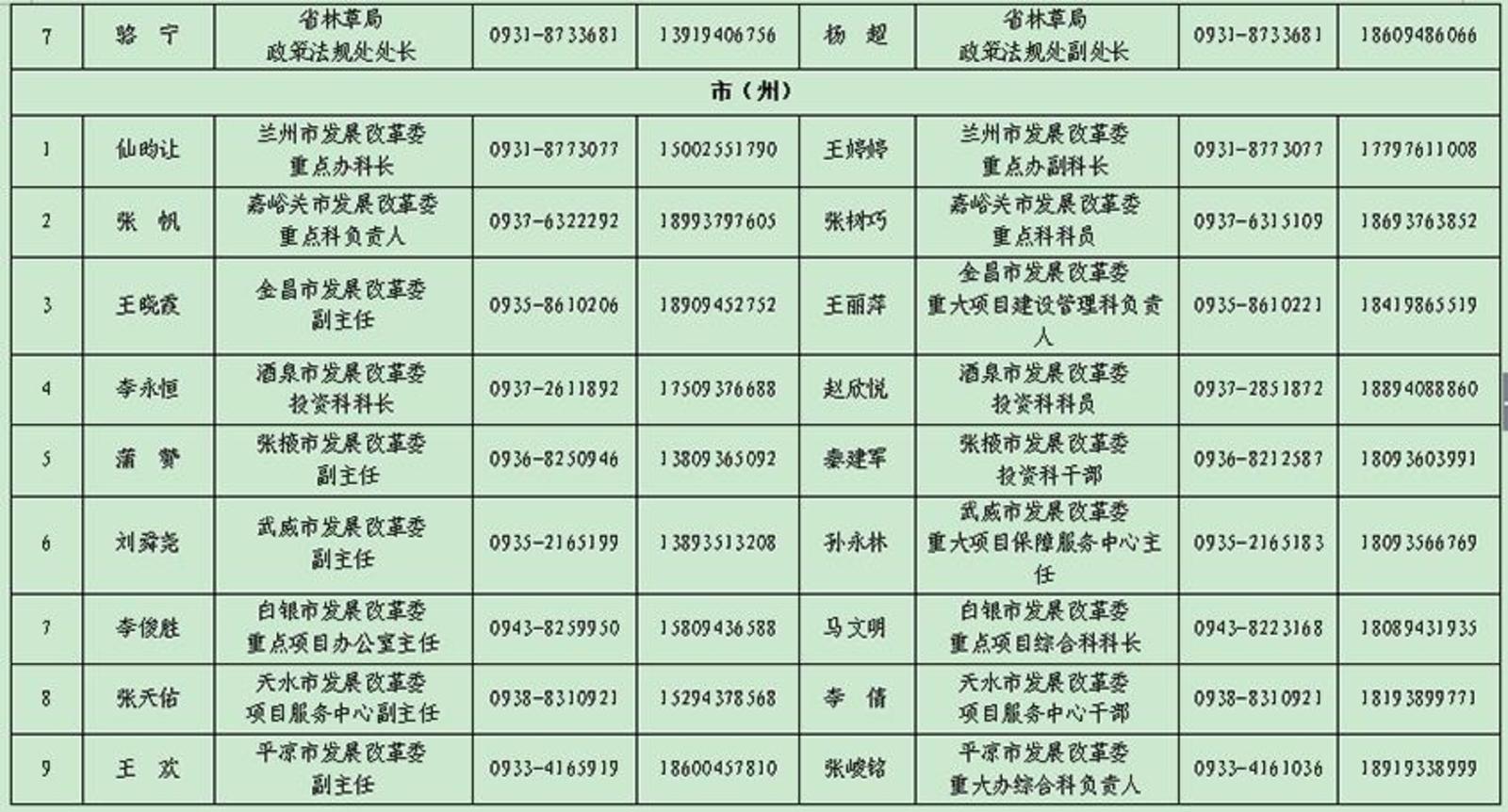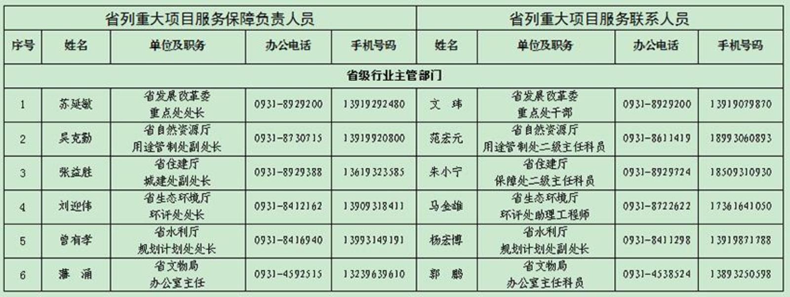 为深入贯彻落实省委、省政府关于开展“三抓三促”行动工作部署,切实做好重大项目落地“大提速”协调保障工作,现将省级行业主管部门和市(州)省列重大项目服务保障人员联系方式公布如下: