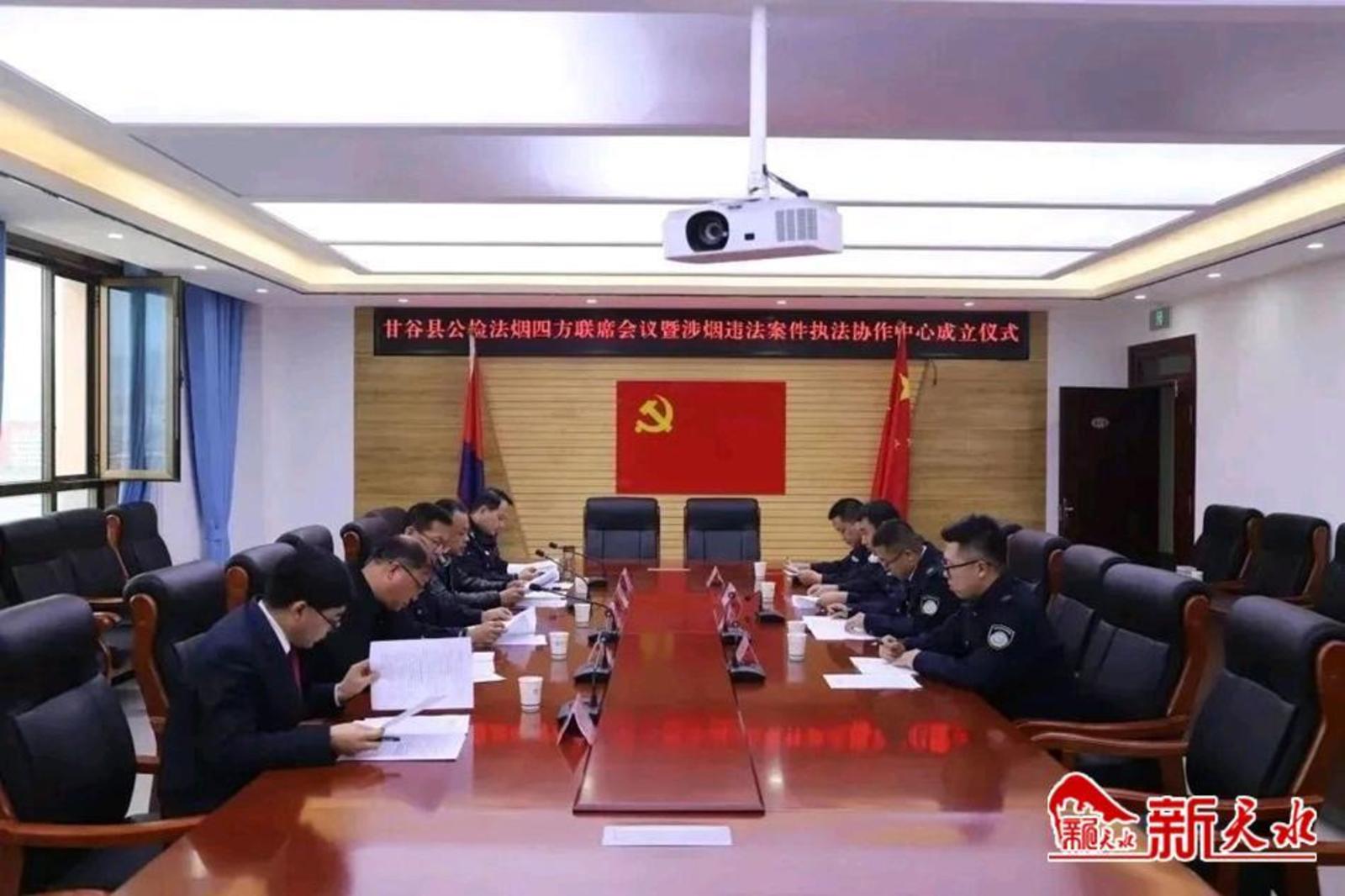 新天水讯 3月30日,甘谷县公检法烟四部门涉烟违法案件执法协作中心在甘谷县公安局挂牌成立,四部门召开首次联席会议。