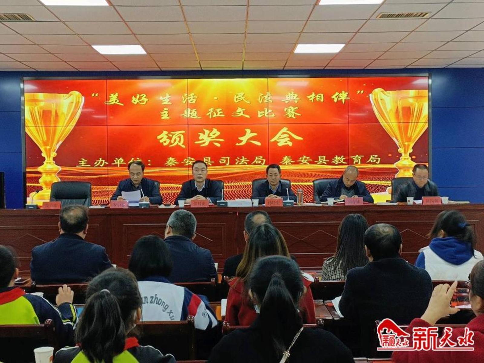 新天水讯 3月30日,秦安县召开全县中小学“美好生活·民法典相伴”主题征文比赛颁奖大会。