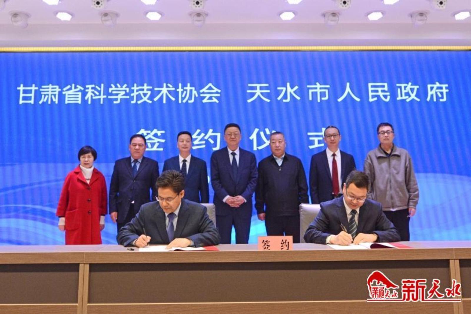 新天水讯【记者马放】4月3日上午,天水市政府与省科协签订合作协议。市委书记冯文戈出席签约仪式并致辞。市委副书记、市长王国先和省科协党组书记、第一副主席包俊宗代表双方签订协议。副市长董小平主持签约仪式。