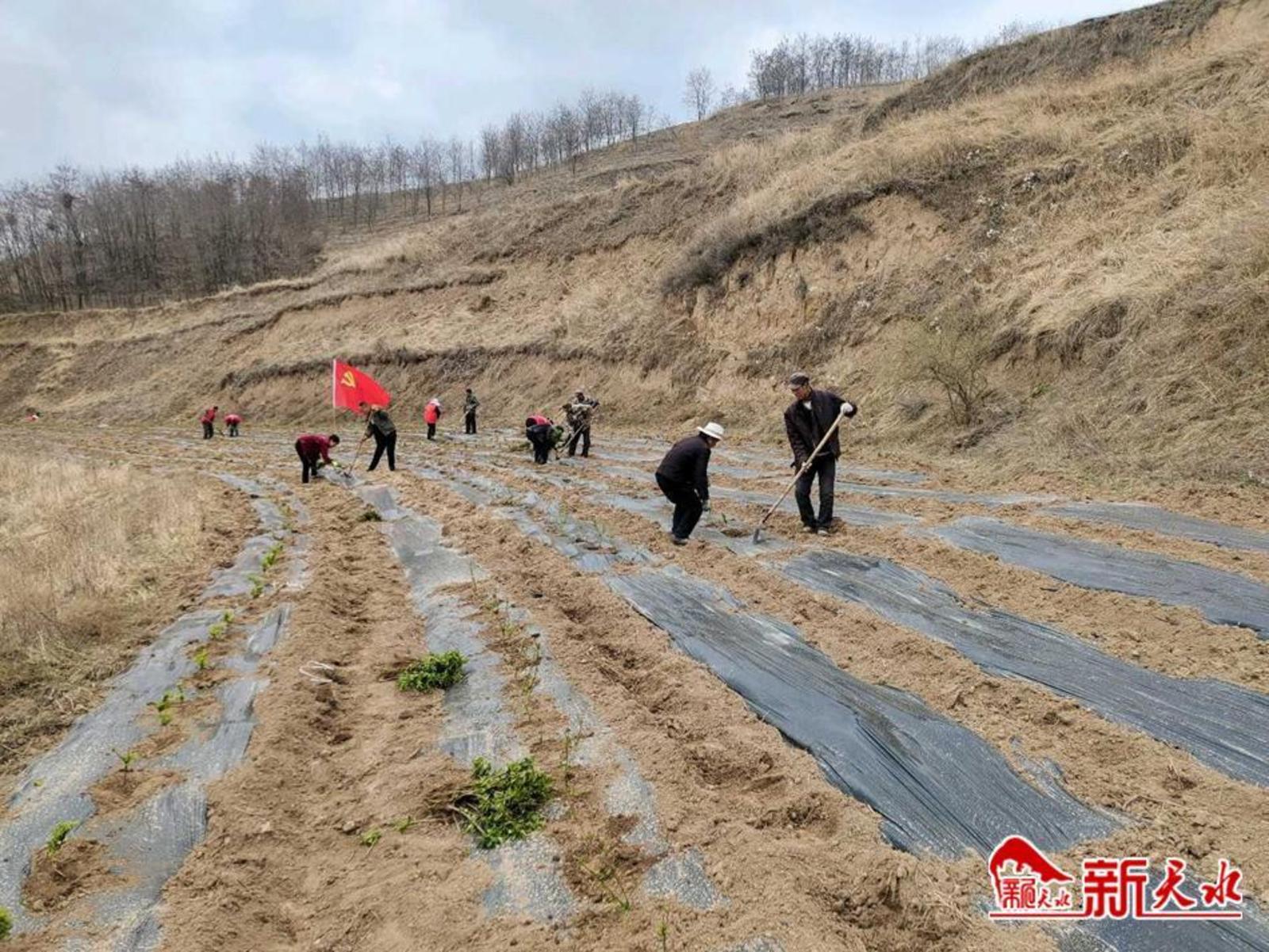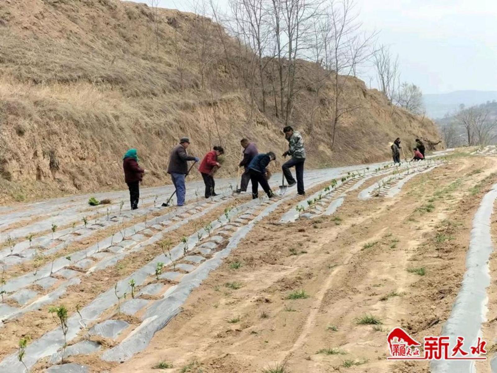 新天水讯 今年3月份以来,清水县金集镇集中对500亩老旧残败果园进行改造提升,建成金银花种植基地1处,辐射带动全镇12个行政村高质量推进1100金银花种植任务。
