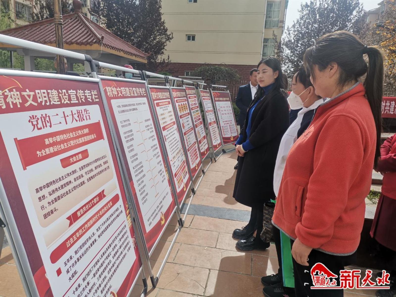 老年广场舞拉开了活动的序幕。活动现场,图文并茂的党的二十大精神宣传展板,以大会报告为核心,用图文的形式讲解了大会主题、过去五年的工作成就和新时代十年伟大变革等党的二十大会议的重要内容,让前来看书的社区群众更好了解了党的二十大精神。