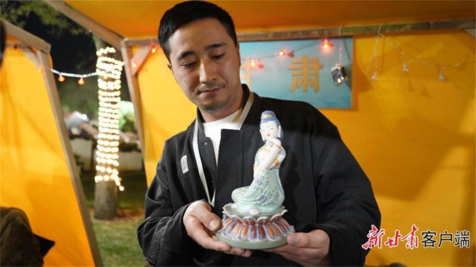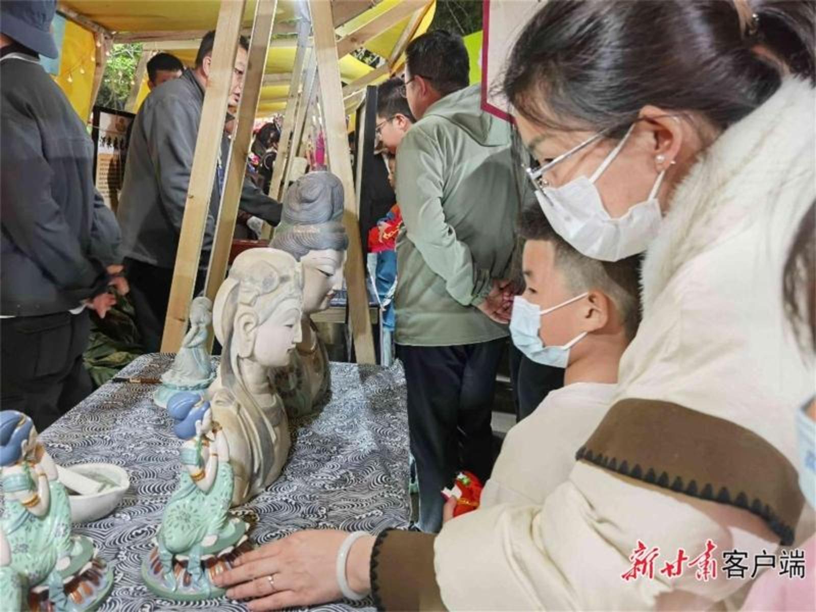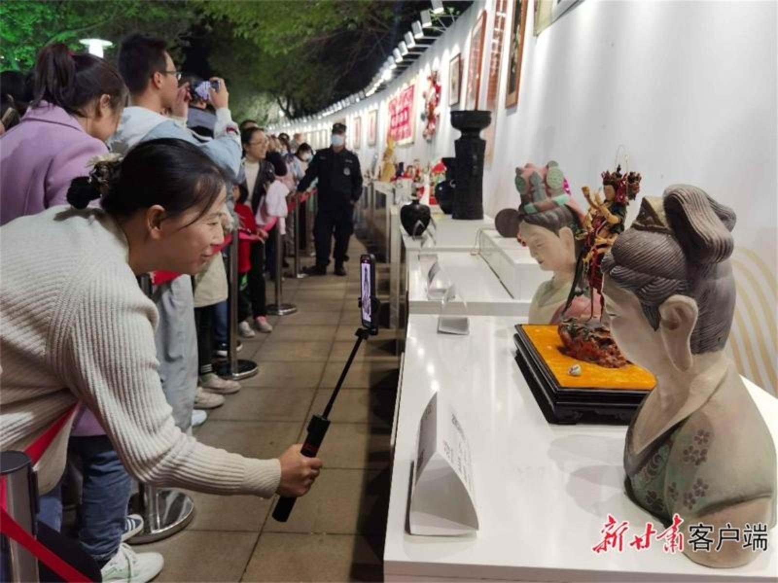 甘肃的夜光杯雕和敦煌彩塑一经亮相,就吸引了市民和游客驻足欣赏。
