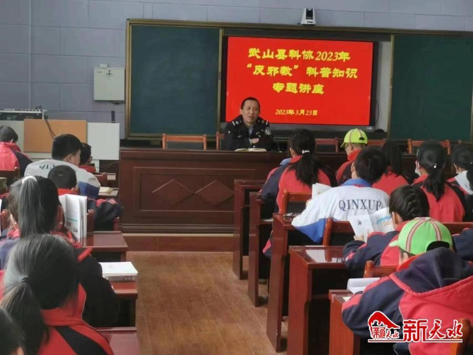 新天水讯 连日来,武山县科协结合科普大篷车进学校、科普文化百校行活动,与公安、教育等部门联合在马力镇、鸳鸯镇、桦林镇、高楼镇等30余所中小学开展了反邪教科普知识进校园宣传活动。