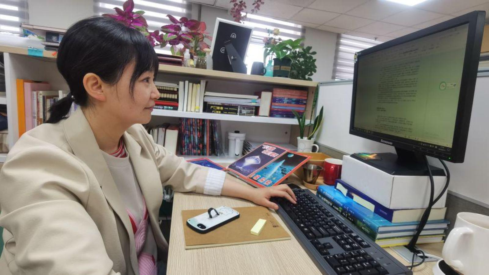 4月13日,《飞碟探索》编辑钱茹在工作。新华社记者 崔翰超 摄