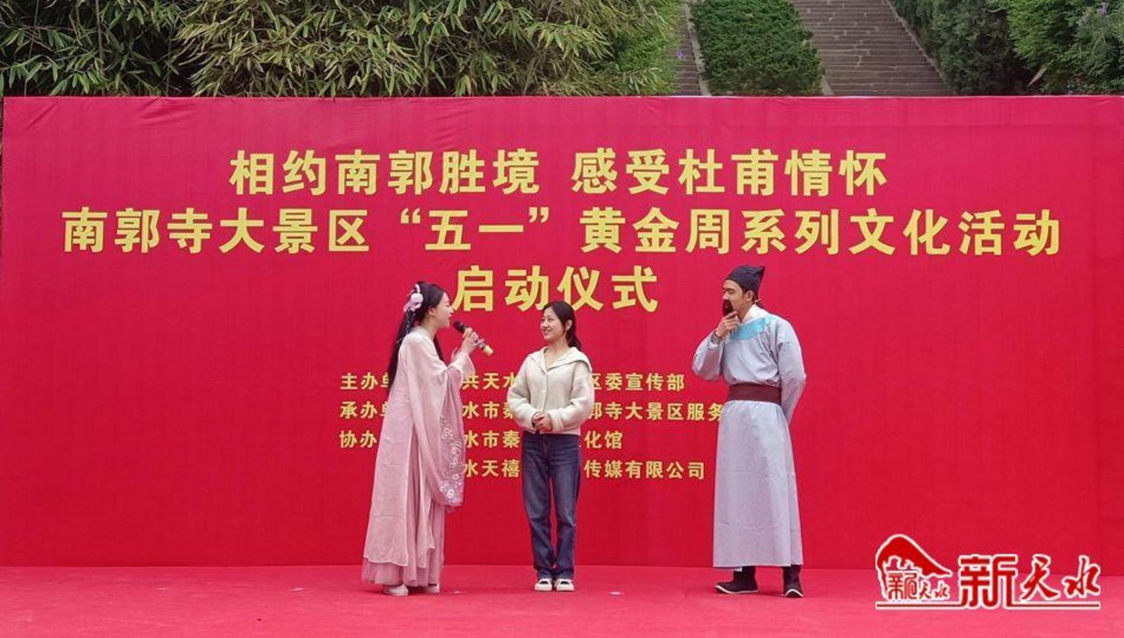 新天水讯【记者 张文都】人间四月芳菲尽,山寺桃花始盛开。4月26日,由秦州区委宣传部主办以“相约南郭胜境•感受杜甫情怀”为主题的南郭寺大景区“五一”黄金周系列文化活动启动。届时,景区将开展“吟游南郭·对话杜甫”互动体验等丰富多彩的活动,诚邀广大游人游览名胜古迹、探寻诗圣情怀、瞻仰历史名人、体验民俗文化,来一次沉浸式的赏景揽胜之旅。