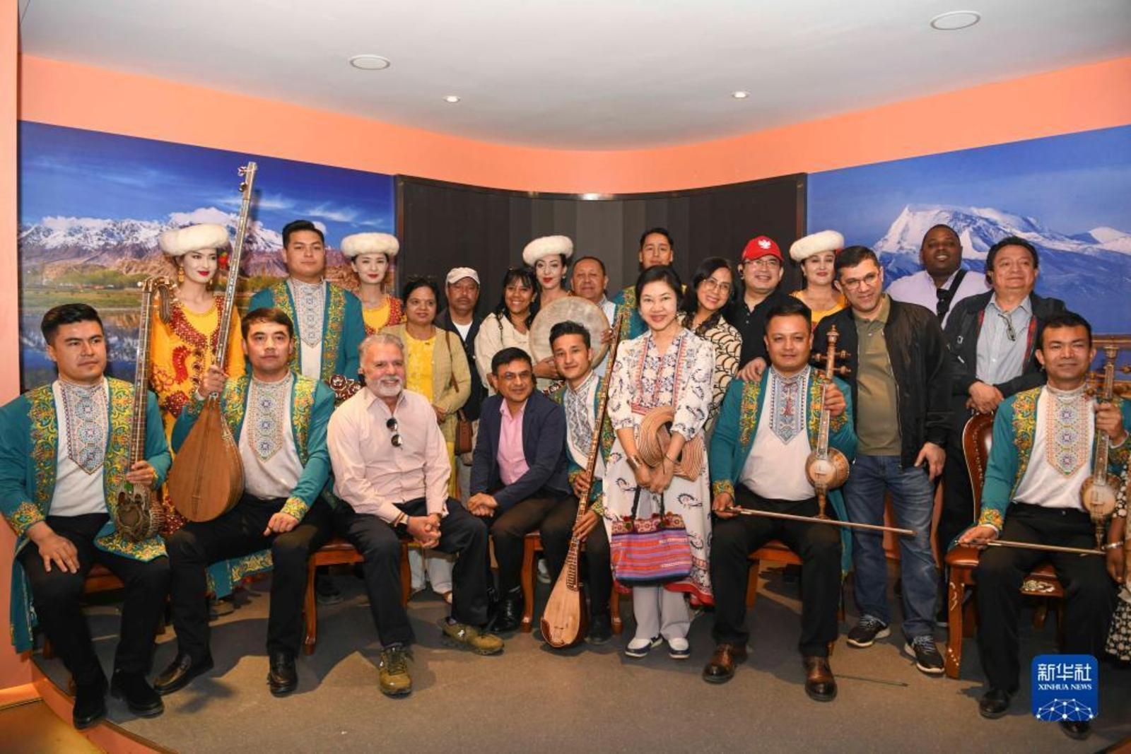 新疆自古以来是多元文化并存的地区。在疏附县新疆民族乐器村,当地乐者用热瓦甫、都塔尔等传统乐器为参访团一行演奏歌曲。巴西驻广州总领事杜飞对此印象深刻:“我曾在中亚地区工作多年,对这些乐器很熟悉,新疆多元文化融合现状展示出各民族可以很好地生活在一起。”