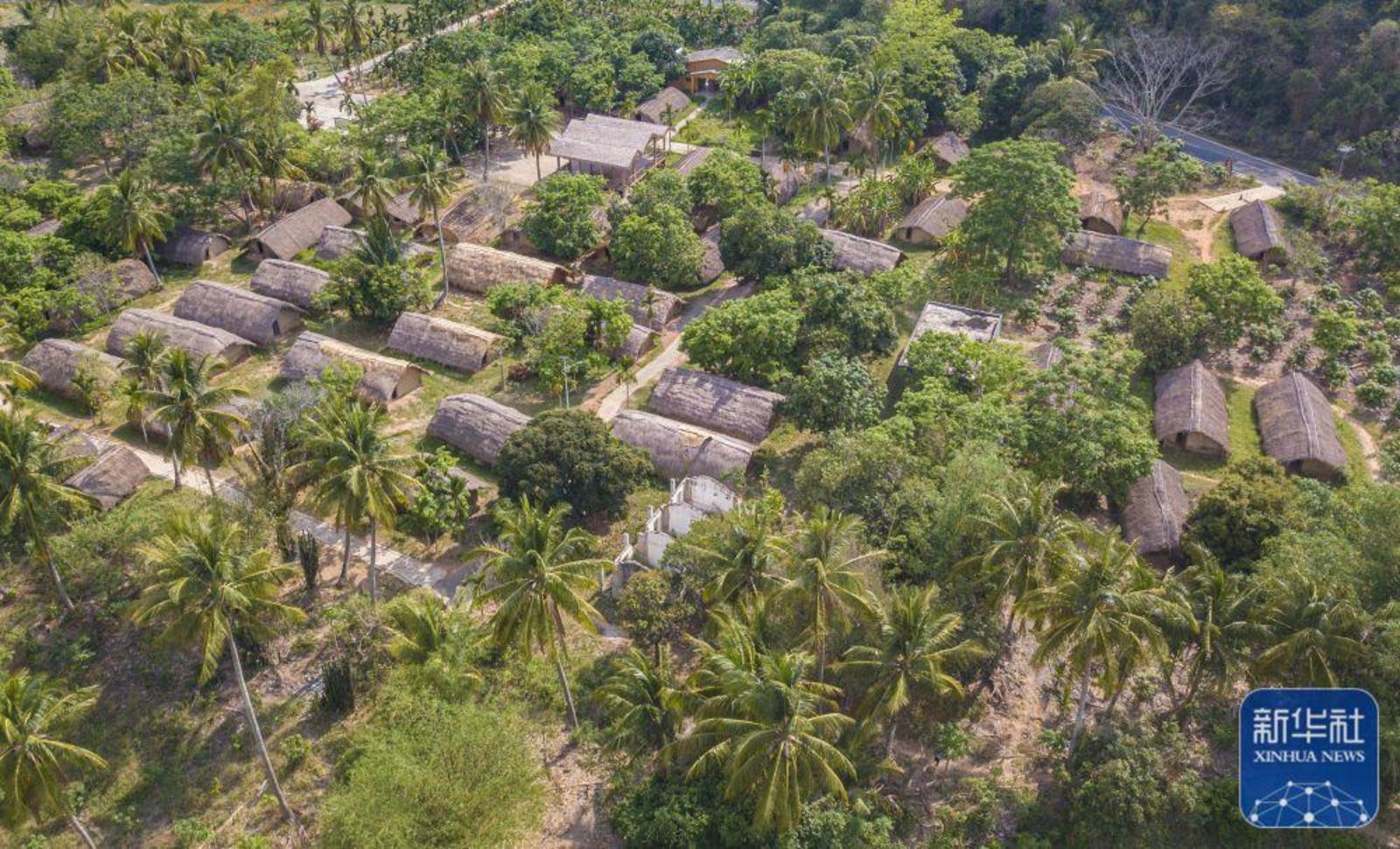 ↑4月28日在海南省东方市白查村拍摄的黎族船型屋(无人机照片)。