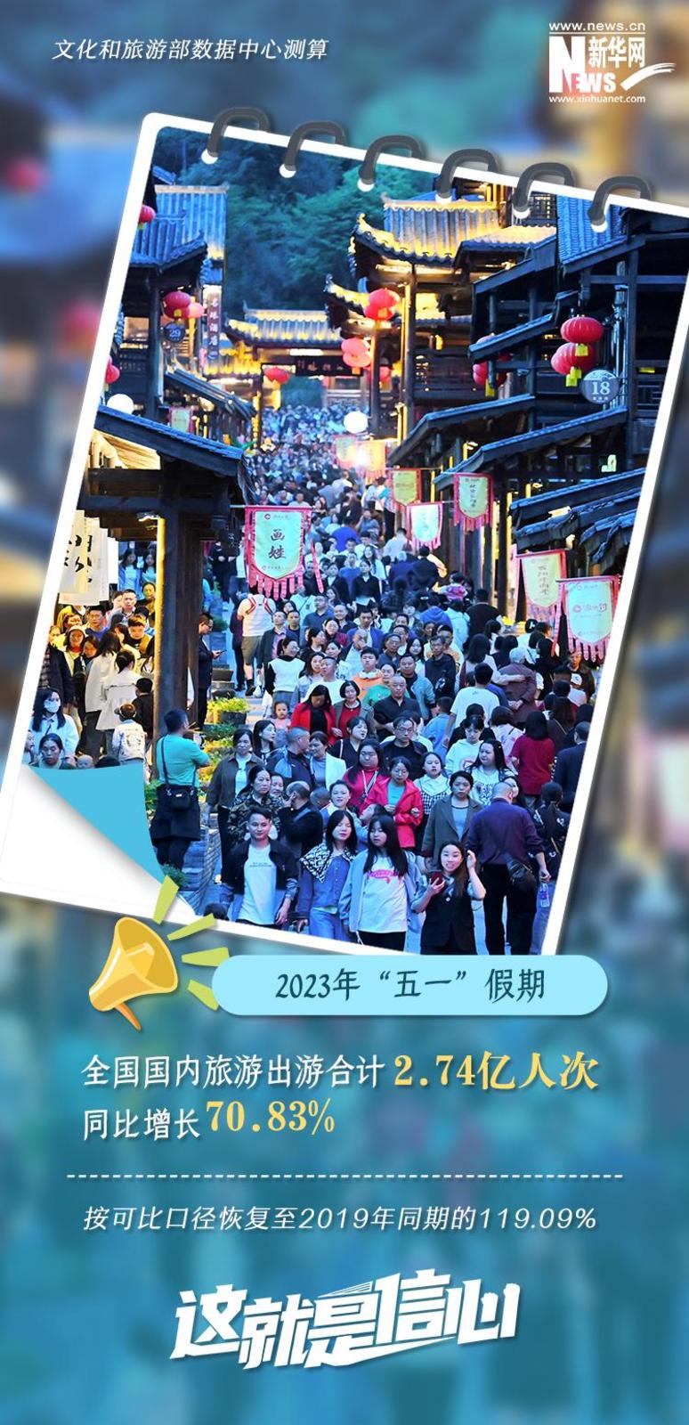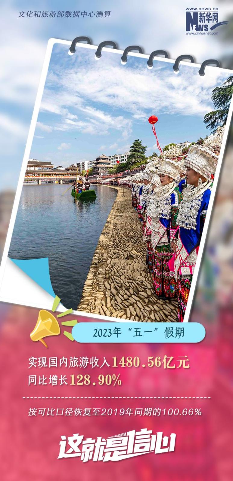 “五一”假期全国国内旅游出游合计2.74亿人次,实现国内旅游收入1480.56亿元.....刚刚结束的“五一”小长假,民众出游热情高涨、文旅行业复苏势头强劲、消费市场表现亮眼,一组数据带你直观感受沸腾的“五一”!