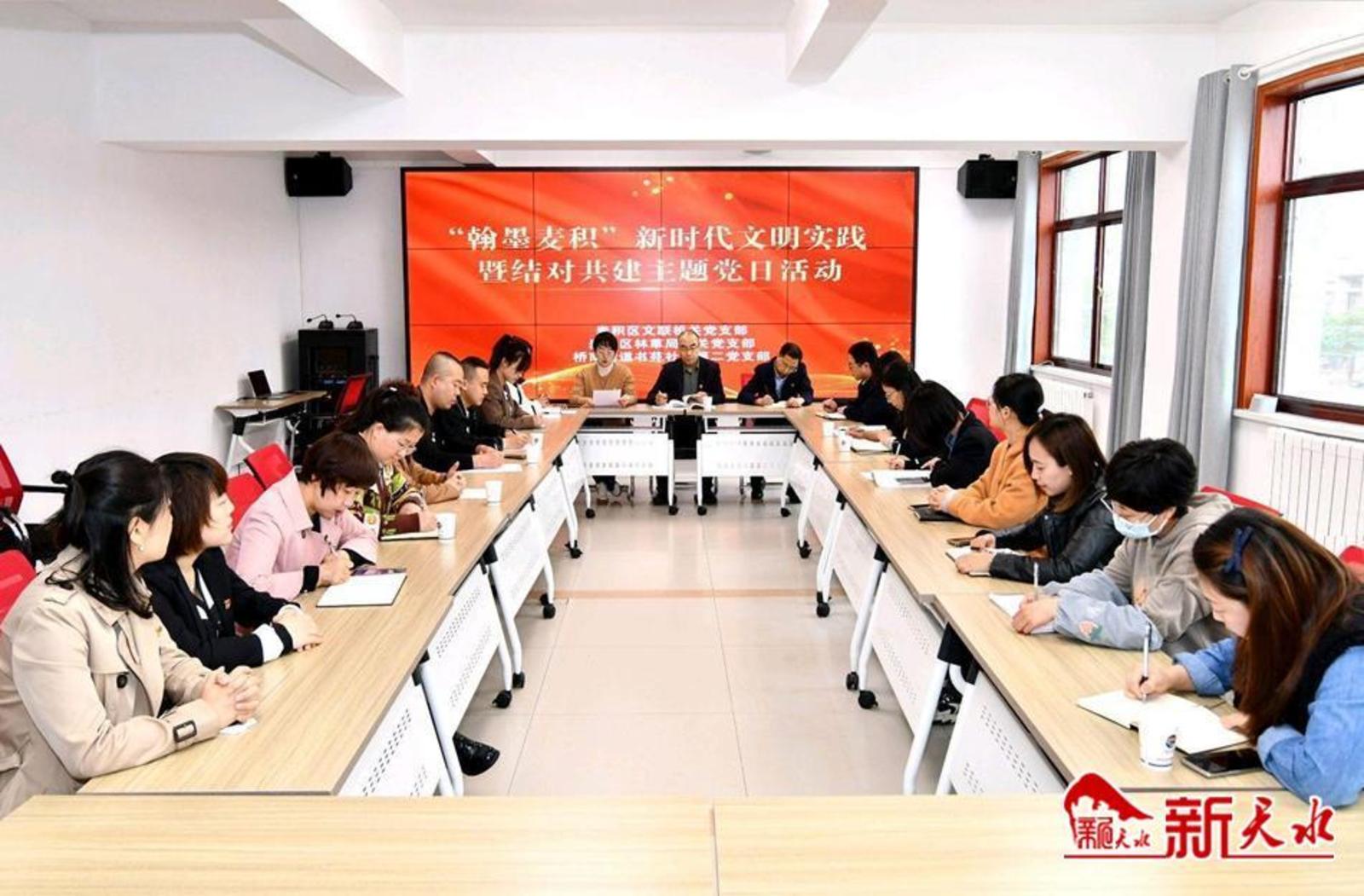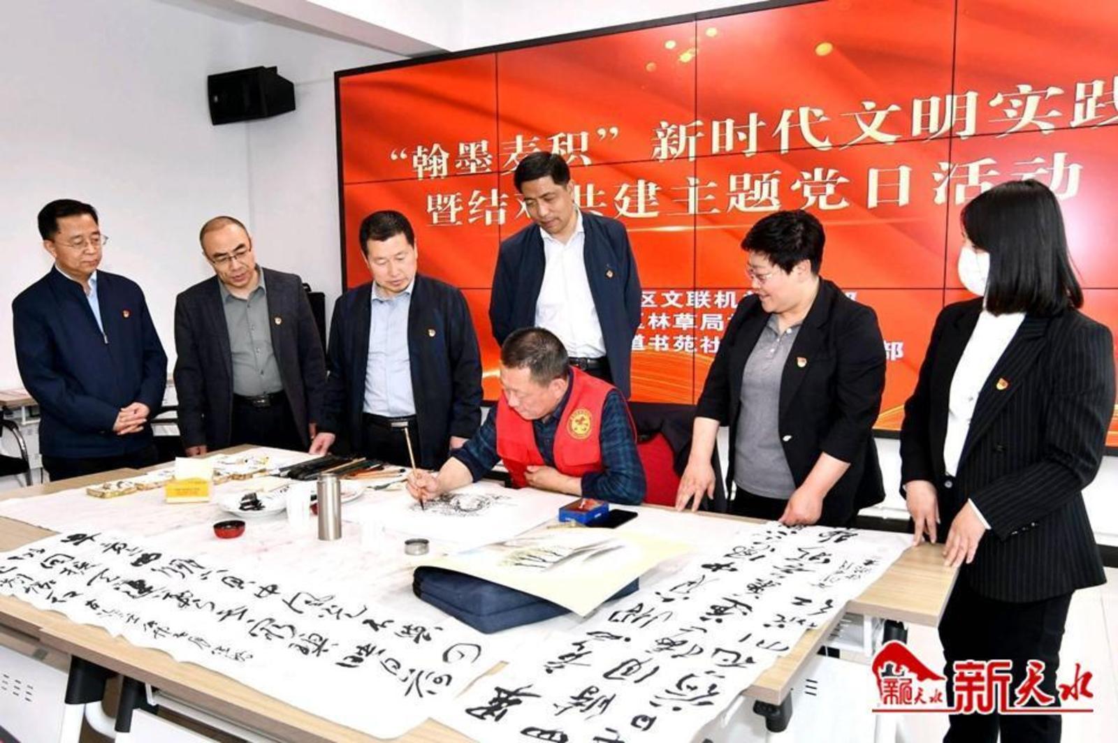 新天水讯【特约通讯员 窦耀辉】5月5日,麦积区文联机关党支部、区林草局机关党支部、桥南街道书苑社区第二党支部联合开展“翰墨麦积”新时代文明实践暨结对共建系列活动,积极探索开创党建共建新模式,以互促共赢为目标,将结对共建与新时代文明实践活动深度融合,做到了规定动作“不走样”、自选动作“有创新”,进一步丰富活动载体,形成了“资源共享、优势互补、共赢发展”的新格局。
