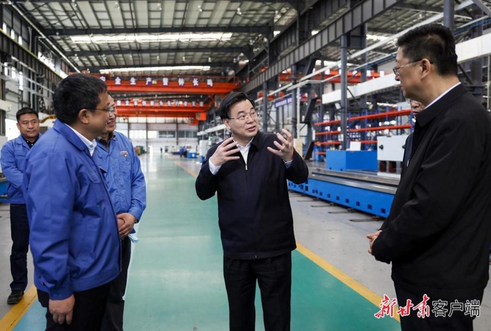 在杰瑞10万吨锂离子电池负极材料项目现场、天水星火机床有限责任公司,胡昌升实地调研企业生产经营、科技创新、项目建设等情况。他强调,要深入推进新型工业化,充分发挥绿电优势,围绕布局全产业链加力招商引资,既延链补链又建链升链,加快推动产业规模化、集群化发展。要下功夫改善营商环境,用心用情服务企业,切实解决企业实际困难,为企业生产经营、做强做大创造良好条件。企业要持续加大科技创新,健全完善现代企业制度,做好员工关爱激励发展动能,抓实全员安全生产,在优势领域精耕细作、锻造长板,不断提升企业竞争力。