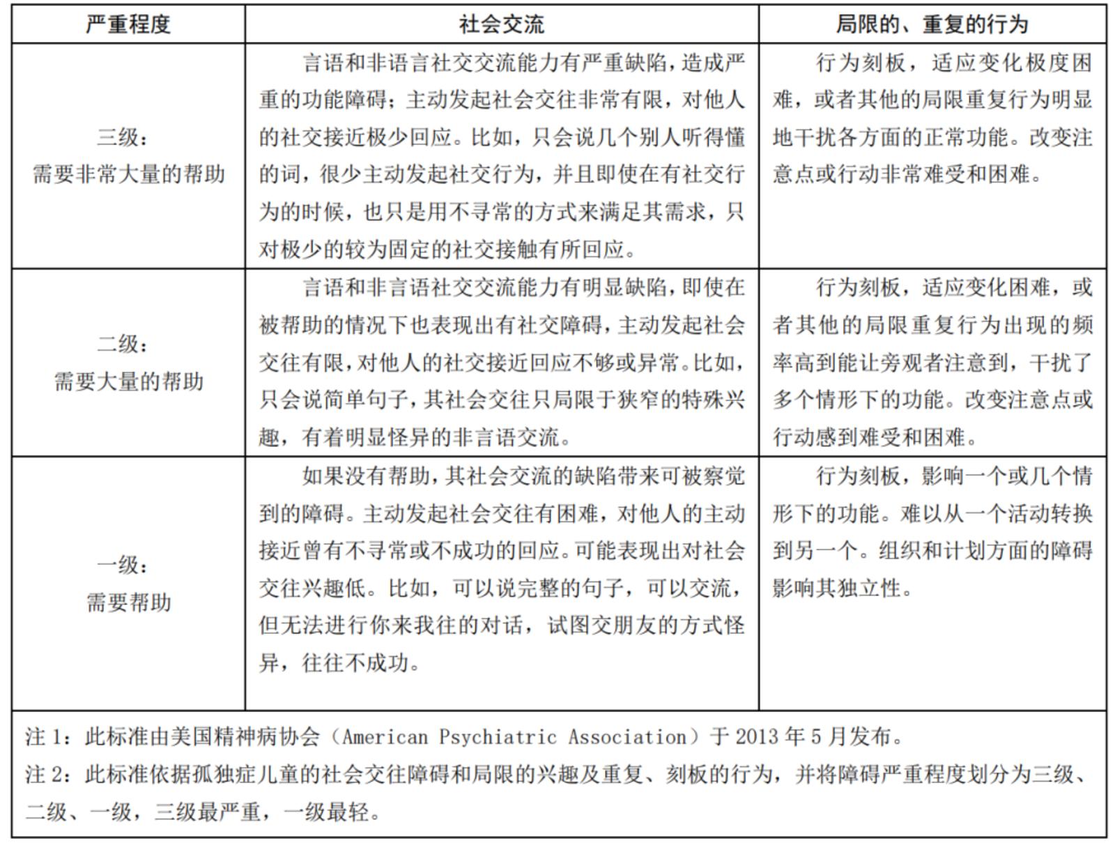 孤独症的严重程度分级为: