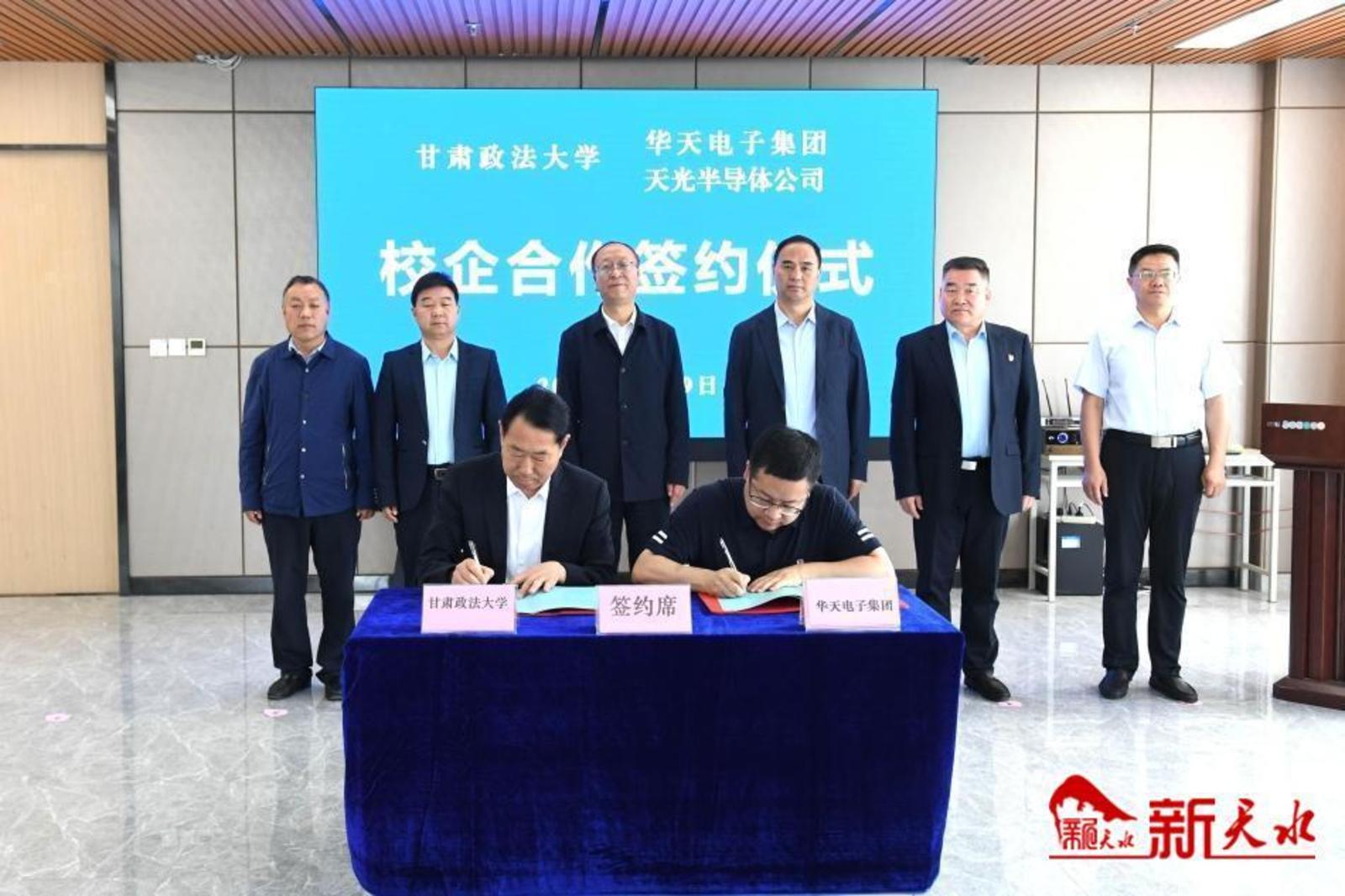 新天水讯【记者马放】5月29日上午,天水华天科技股份有限公司、天水天光半导体有限责任公司分别与甘肃政法大学签订校企合作协议。副市长胡志勇出席签约仪式并致辞,甘肃政法大学党委书记焦盛荣出席签约仪式。