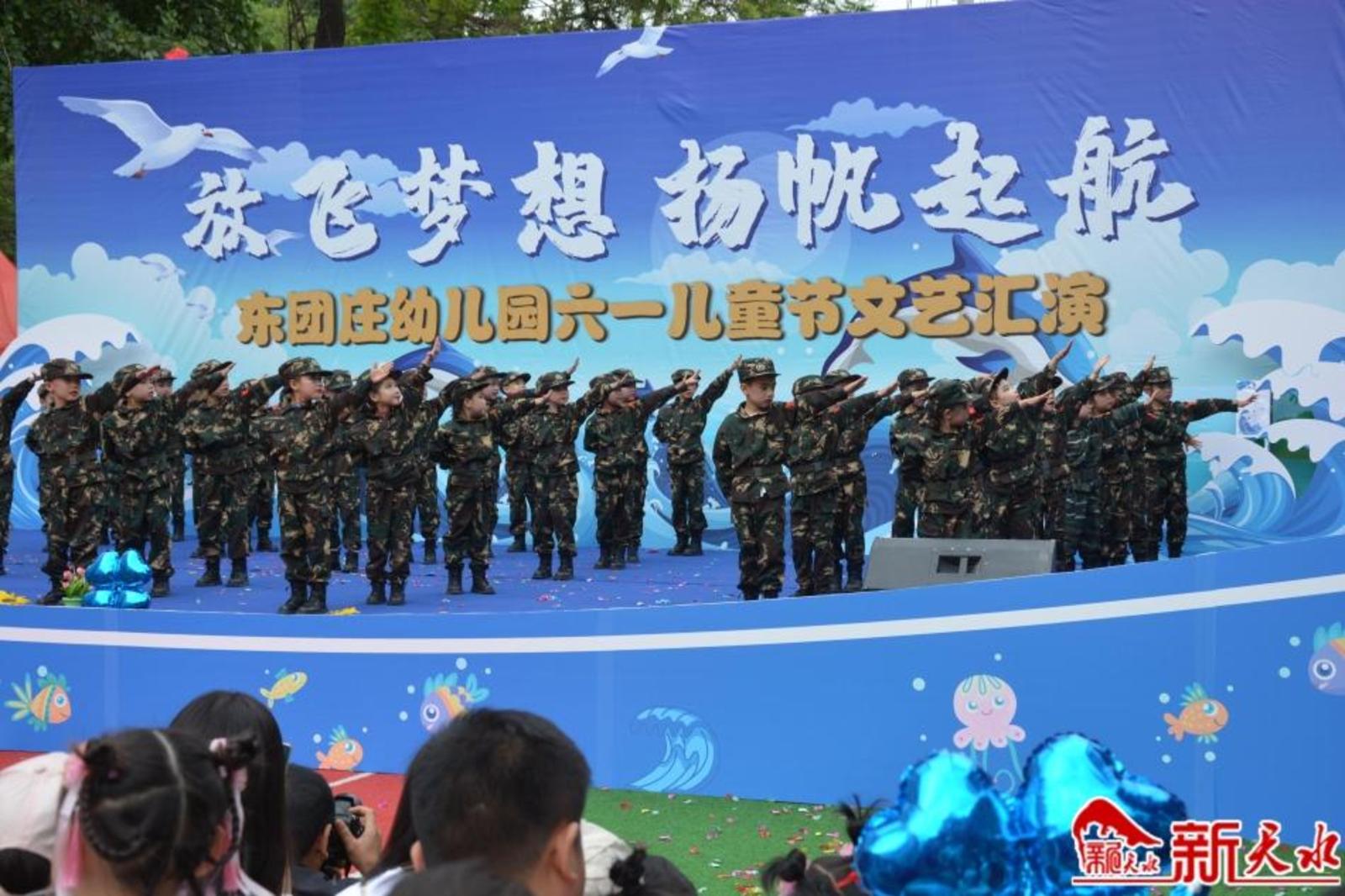 “中华五千年,多少英雄浮现,战火里的容颜,触动心弦。不灭的信念,红船无畏艰险,革命精神永远记心间……”5月30日,稚嫩的童音在秦州区东团庄幼儿园清脆唱响,精彩的舞蹈不时掀起欢乐的波浪,由东团庄幼儿园和合作巷分园联合举办的以“放飞梦想 扬帆起航”为主题的庆“六一”文艺汇演活力无限,让整个校园成了一片欢乐的海洋。