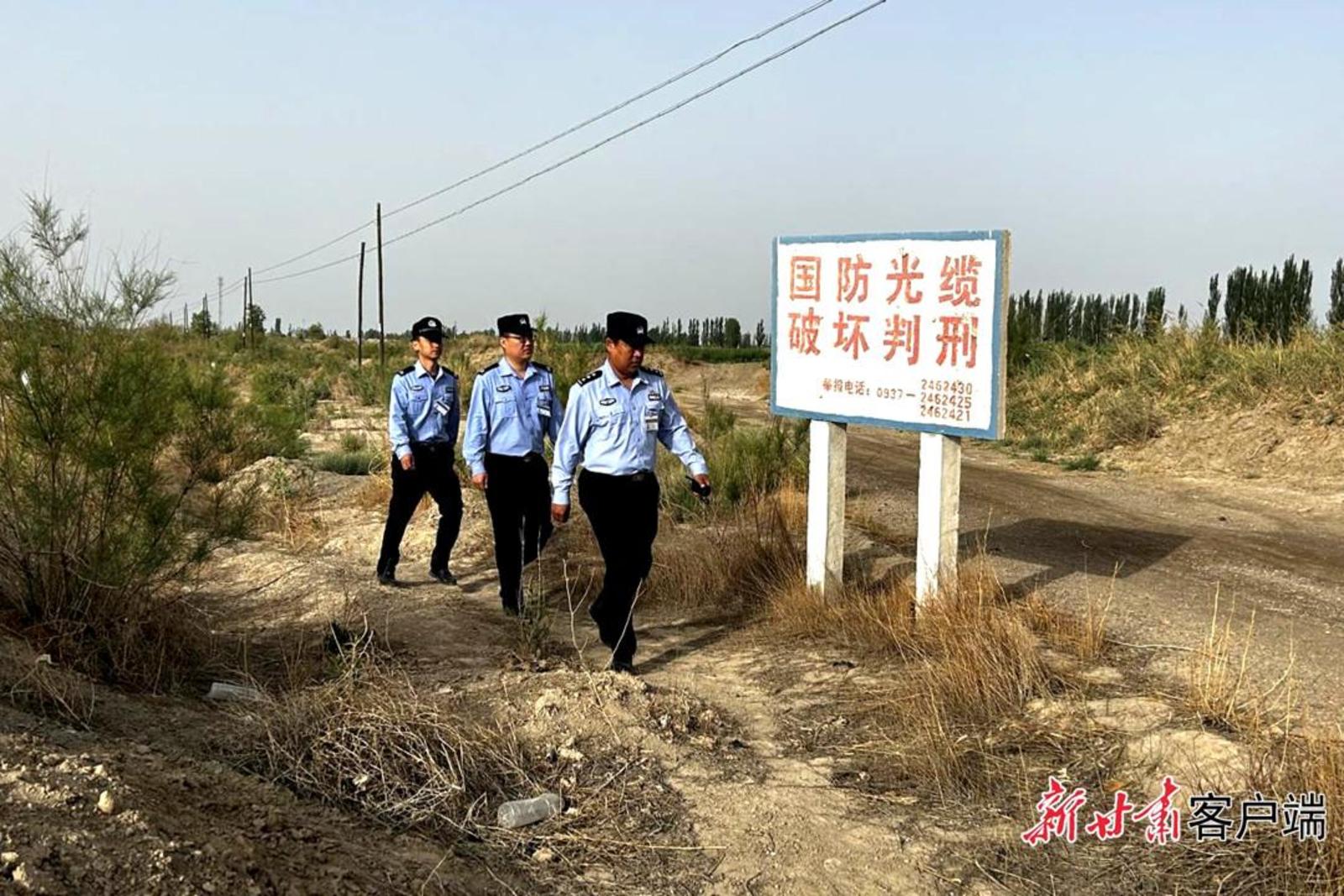 金塔县公安局民辅警开展国防光缆巡护。新甘肃·甘肃日报通讯员 曹红祖摄