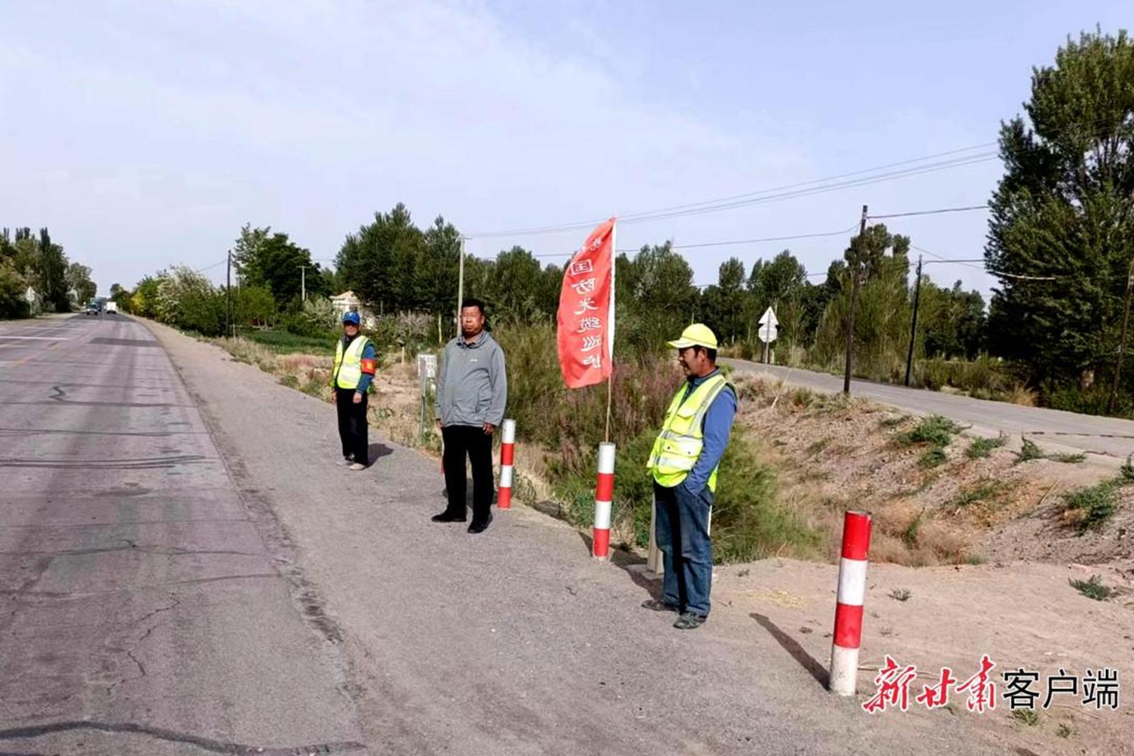 金塔县航天镇组织镇村组干部、交通协管员和民兵组成护路护线工作小组,开展国防光缆巡护。新甘肃·甘肃日报通讯员 曹红祖摄