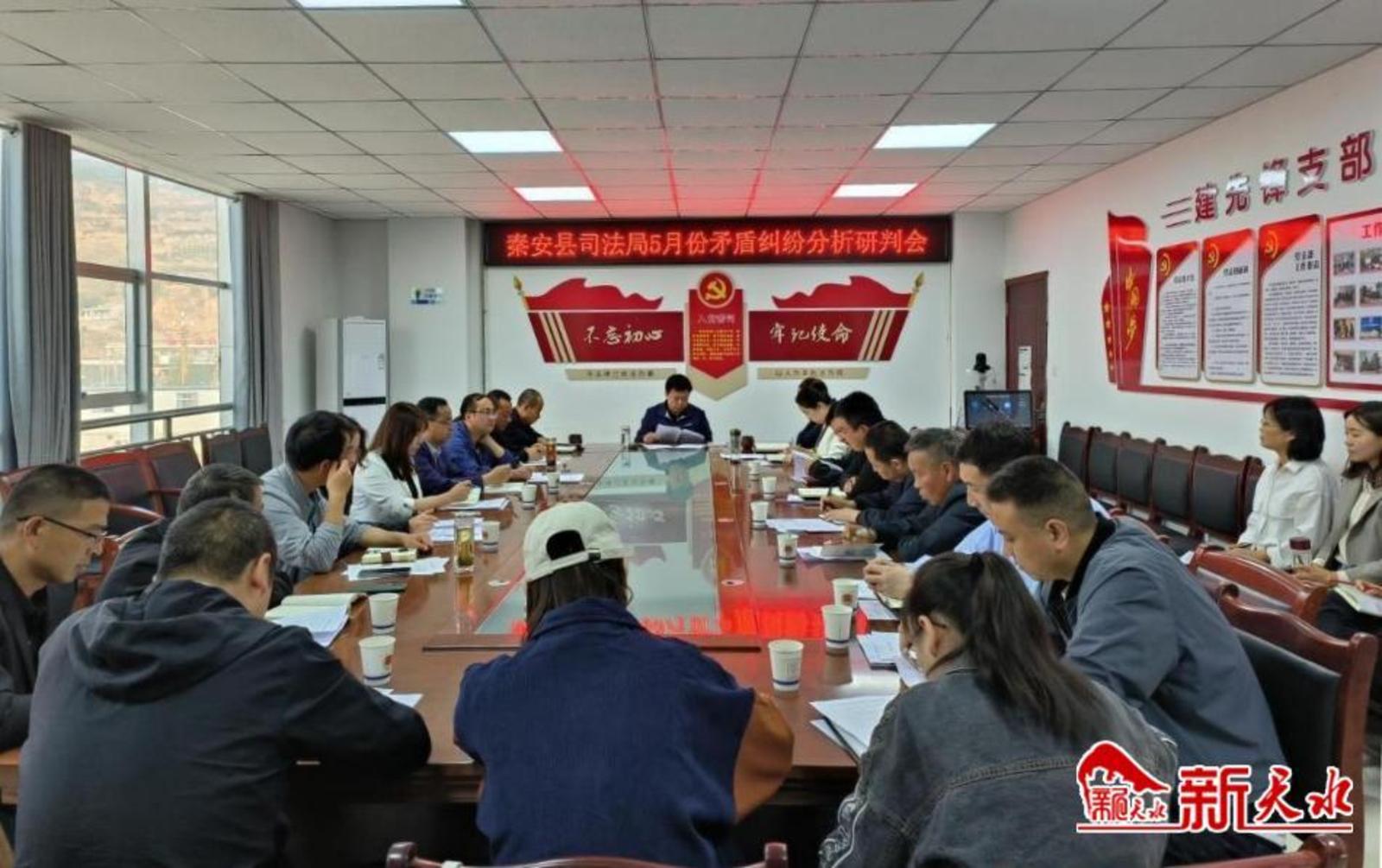 新天水讯 6月5日,秦安县司法局组织召开5月份矛盾纠纷排查分析研判会,通报5月份各镇案件受理调处情况,梳理分析全县矛盾纠纷排查化解工作存在的问题。
