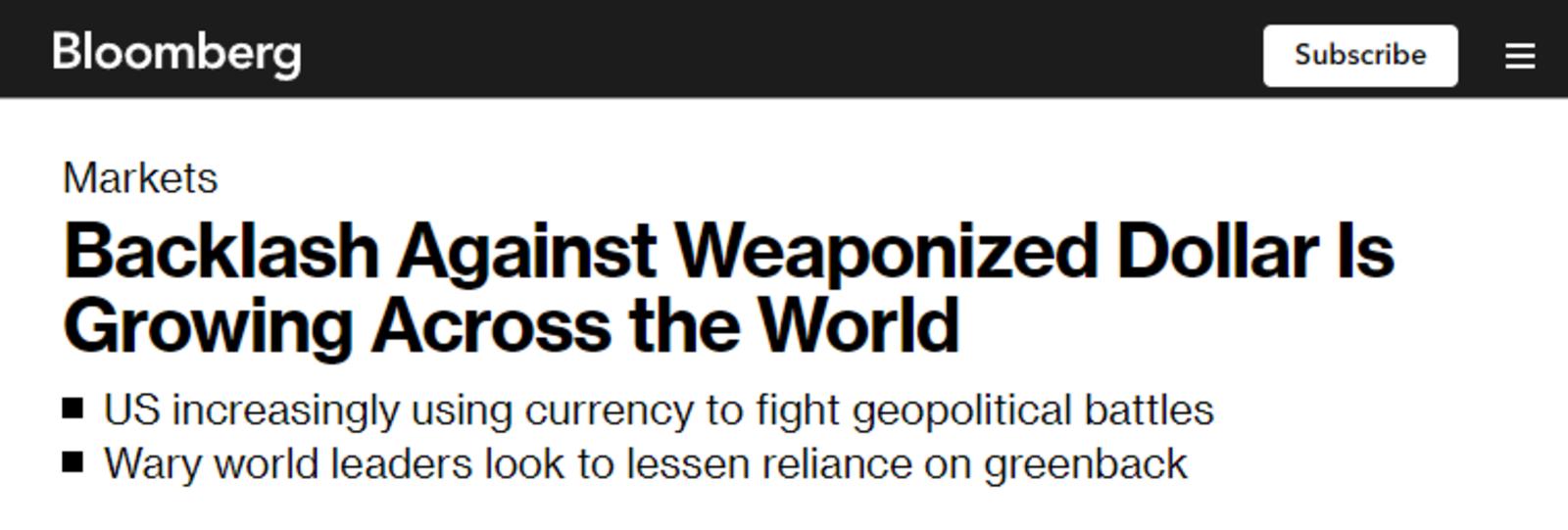 文章指出,对许多全球领导人来说,他们采取这些措施的理由惊人地相似。他们说,美元正在被武器化,被用来推动美国的外交政策优先事项,并惩罚那些反对者。拜登政府对俄实施制裁,冻结了该国数千亿美元的外汇储备,试图将该国赶出了全球银行系统。对于世界上大部分国家来说,这都是一个鲜明的提醒,提醒他们自身对美元的依赖,无论他们如何看待这场冲突。