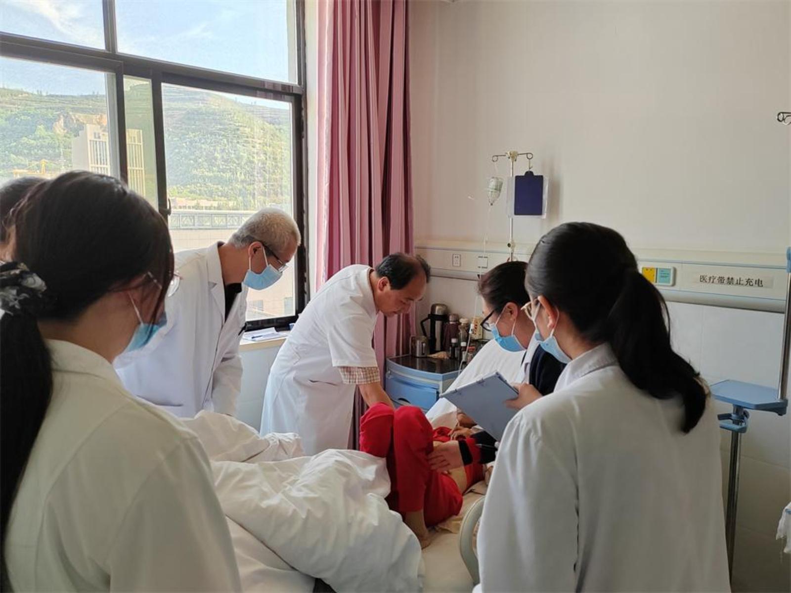 随后,马鸿远和张有成教授对外科和消化内科的住院患者进行查房,对患者进行了专业问询、体格检查,并对同行的医生进行现场教学。