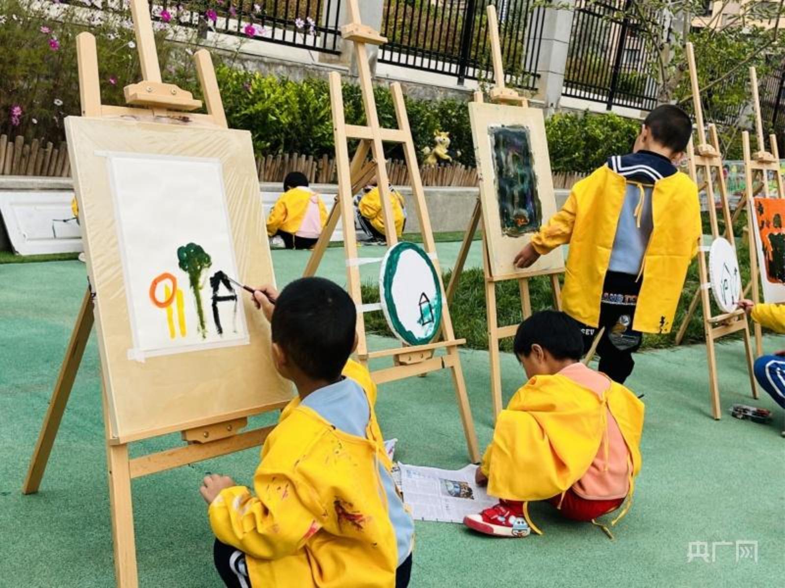 一间间教室整洁明亮,不同房间里摆放着各式手工、绘画、图书等教具;教室外,孩子们跟着老师一起做着游戏;教室内,孩子们正在把今天的所见所闻,用画画的方式记录下来……