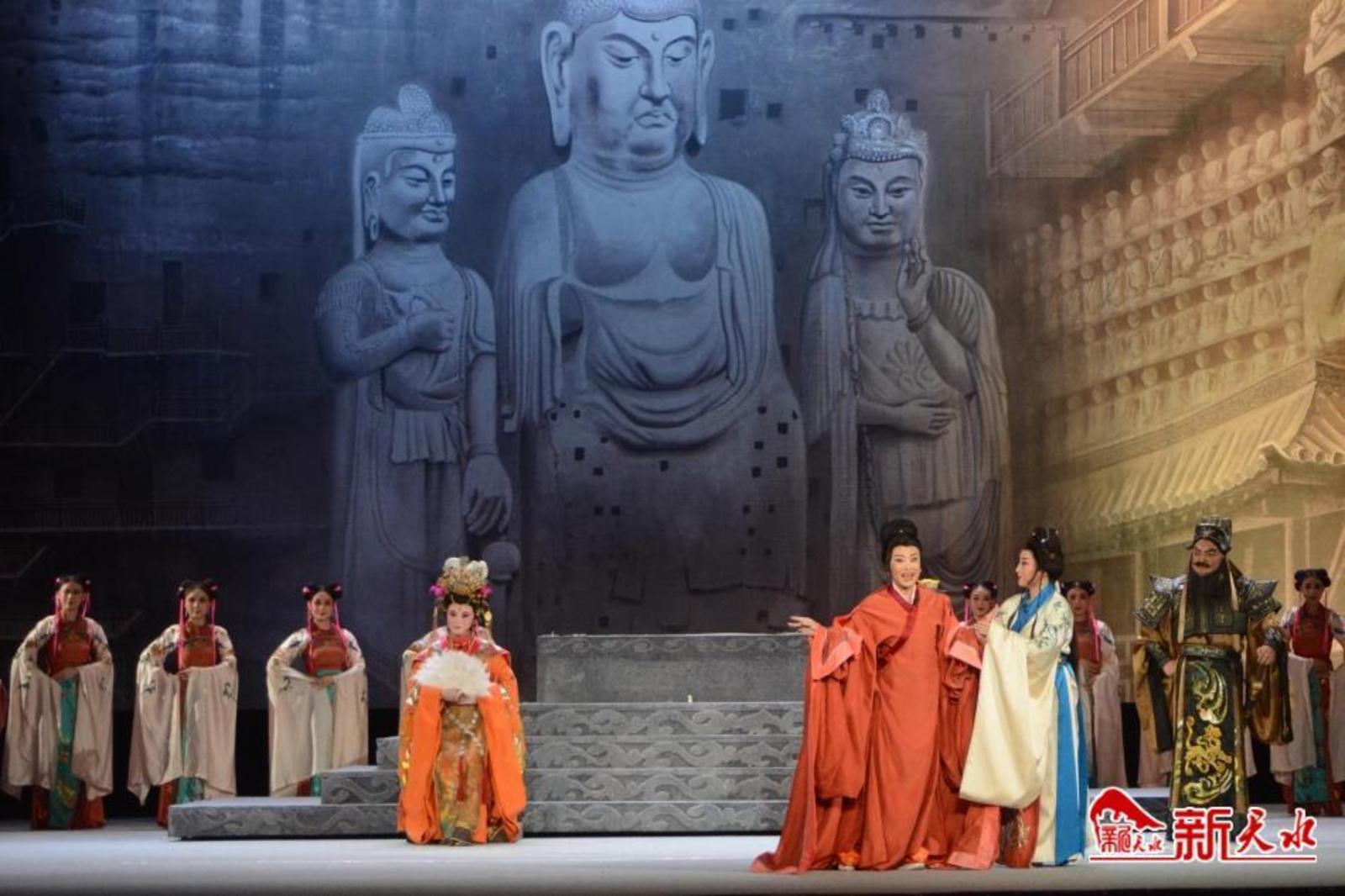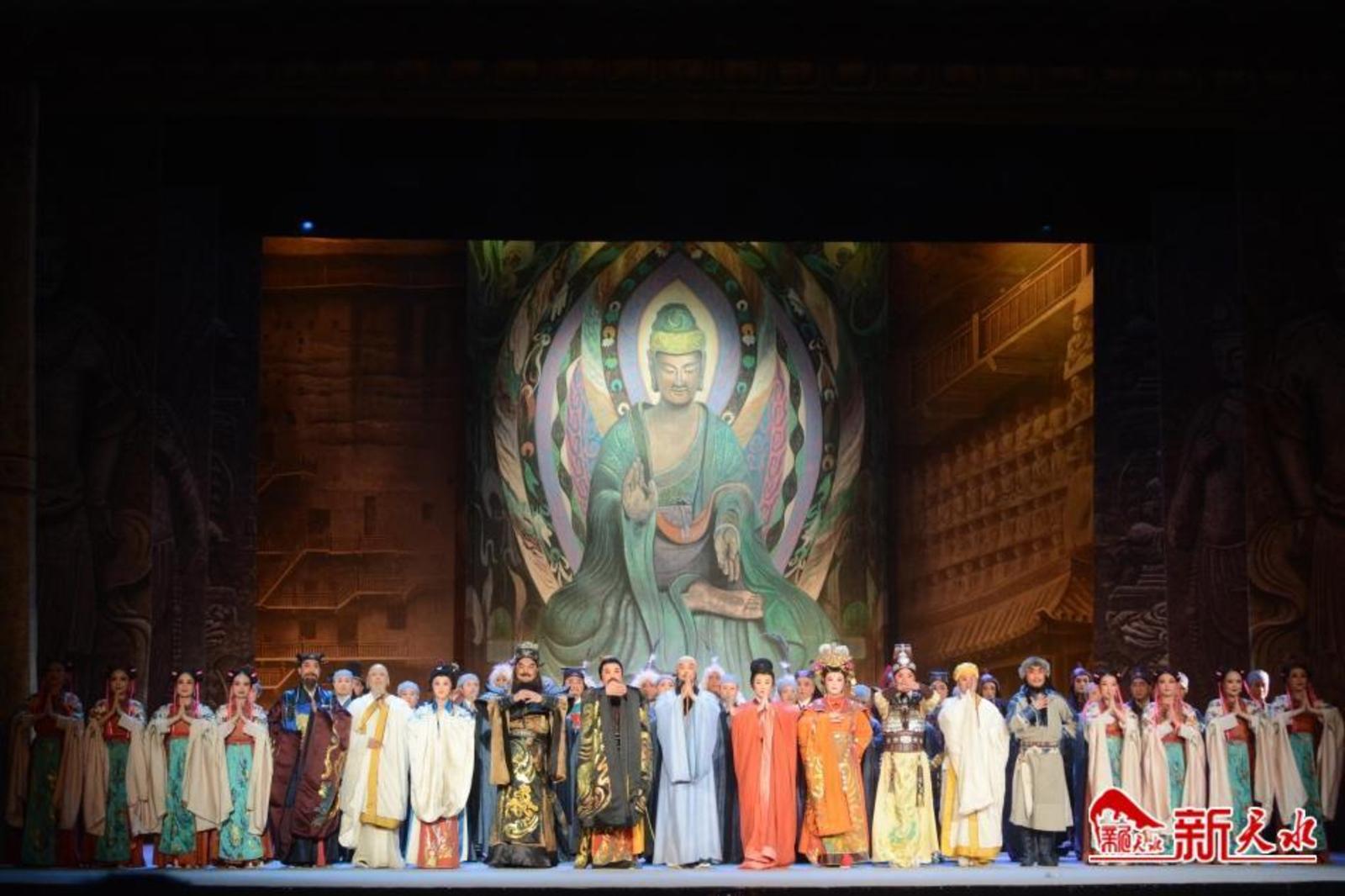 新天水讯【记者马放 孙镇】6月21日晚,2023(癸卯)年公祭中华人文始祖伏羲大典暨第32届天水伏羲文化旅游节优秀展演剧目,大型原创秦腔历史剧《麦积圣歌》在秦州大剧院上演,参加2023(癸卯)年公祭中华人文始祖伏羲大典的部分嘉宾观看了演出。