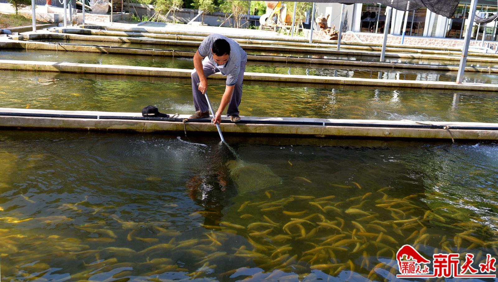 盛夏时节,麦积区东岔镇交川河冷水鱼养殖基地的鱼儿欢快地游在碧水中,这些鱼群在阳光的照射下光彩夺目。投放鱼食的技术员抛撒出饲料时,鱼儿竞相跃出水面,一幅鱼群欢跃产业兴的景象。
